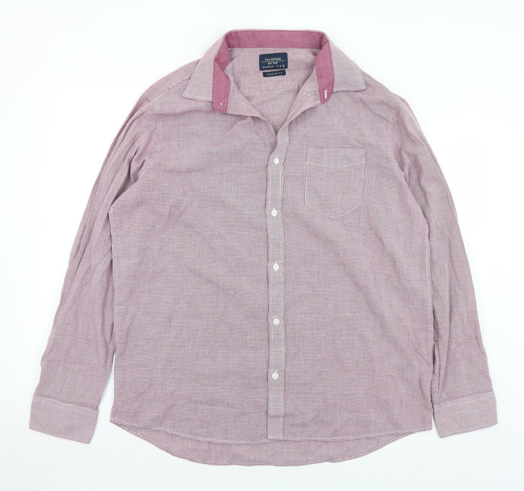 F&F Mens Purple Check Cotton Button-Up Size 17 Collared Button