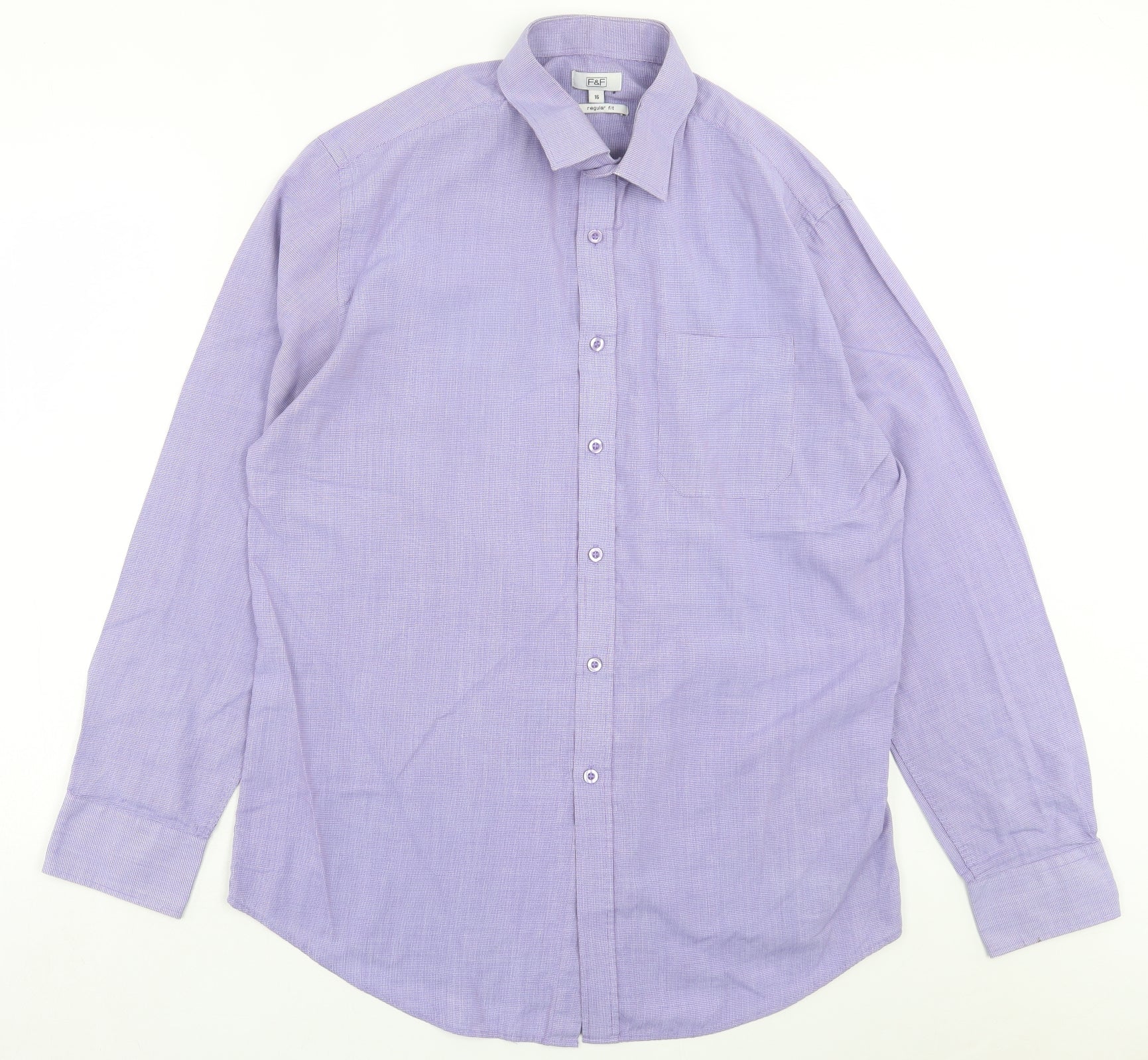F&F Mens Purple Polyester Button-Up Size 16 Collared Button - Pocket Detail