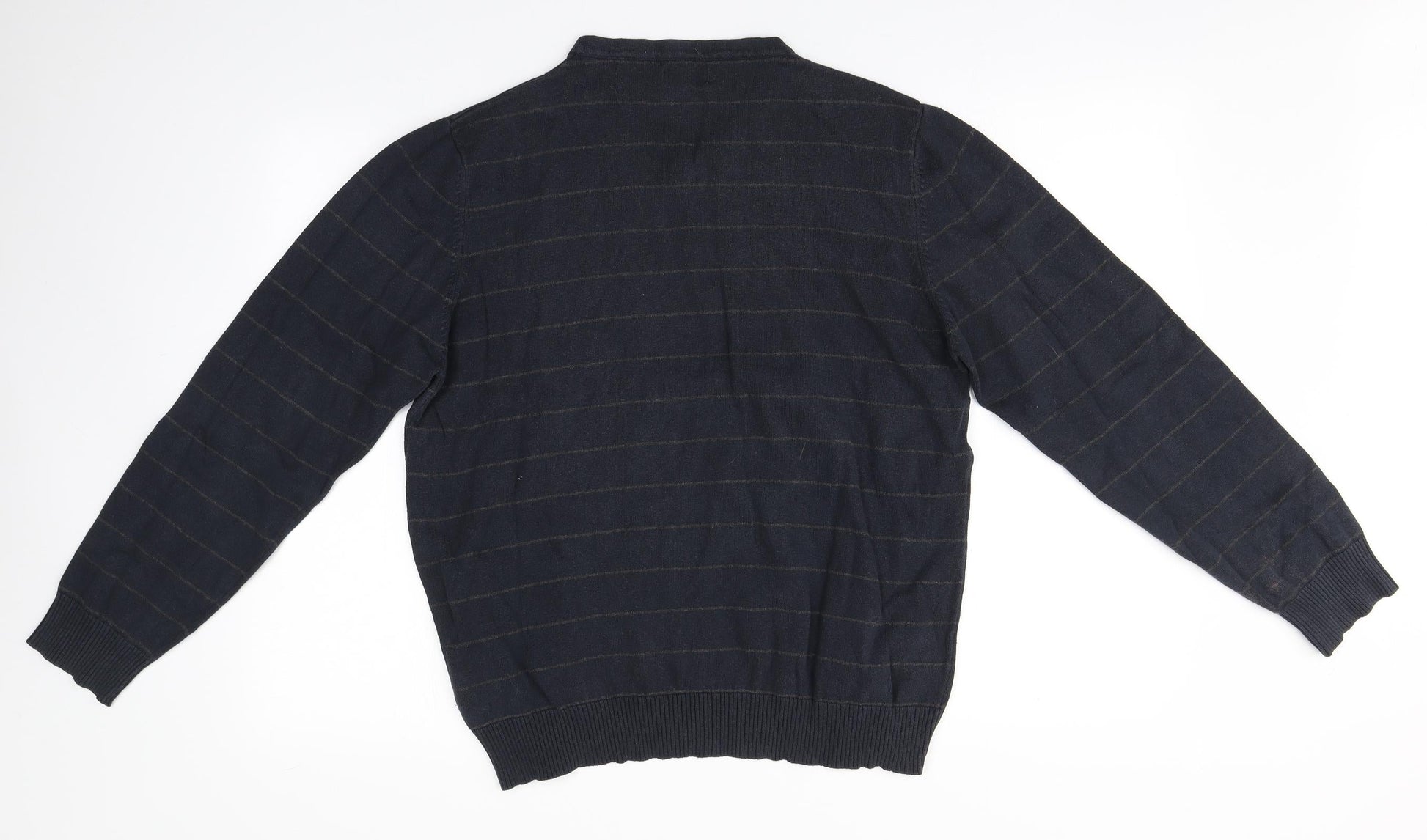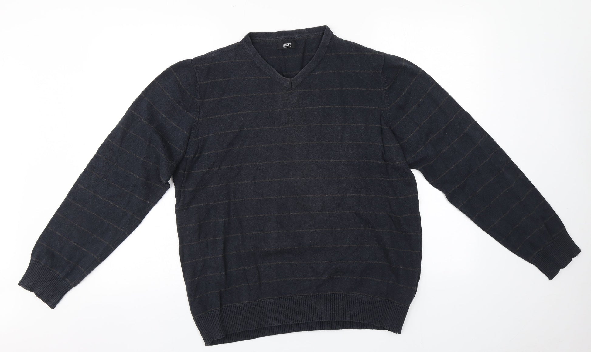 F&F Mens Red V-Neck Striped Cotton Pullover Jumper Size L