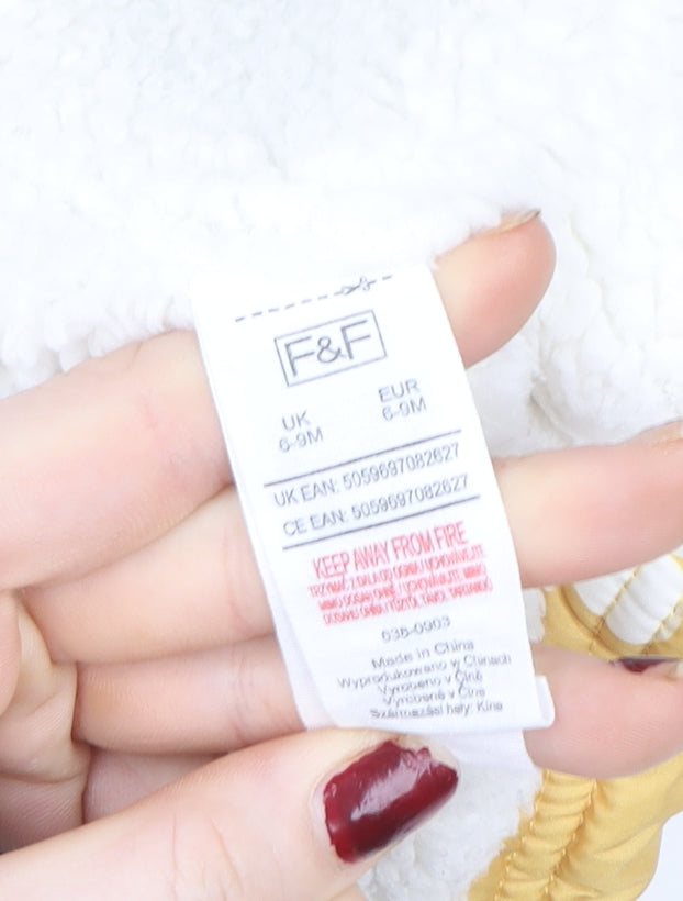 F&F Unisex Baby Yellow Heart Puffer Jacket 6-9 Months Hooded Winter Coat