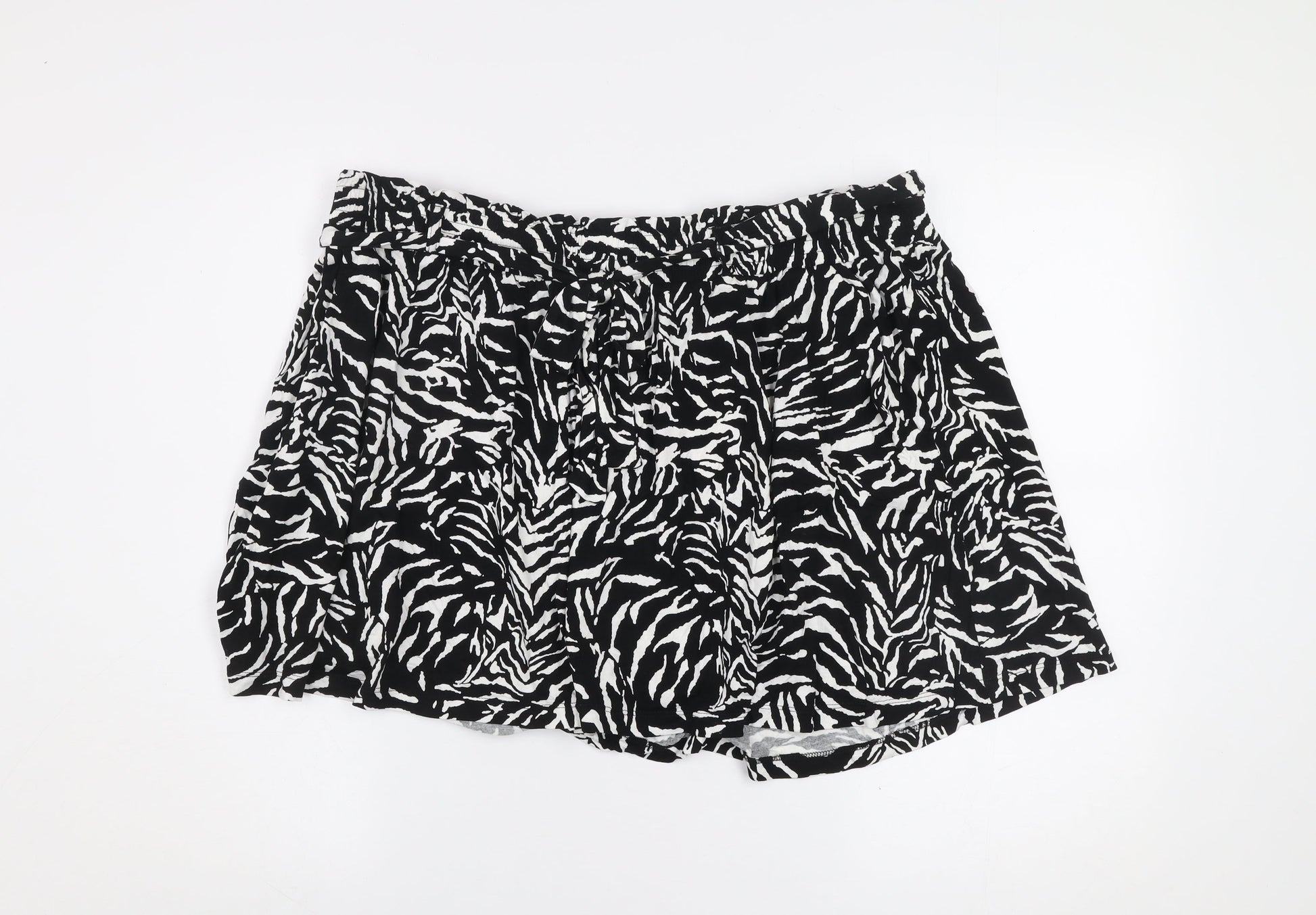 F&F Women Black Animal Print Jersey Shorts Size 20