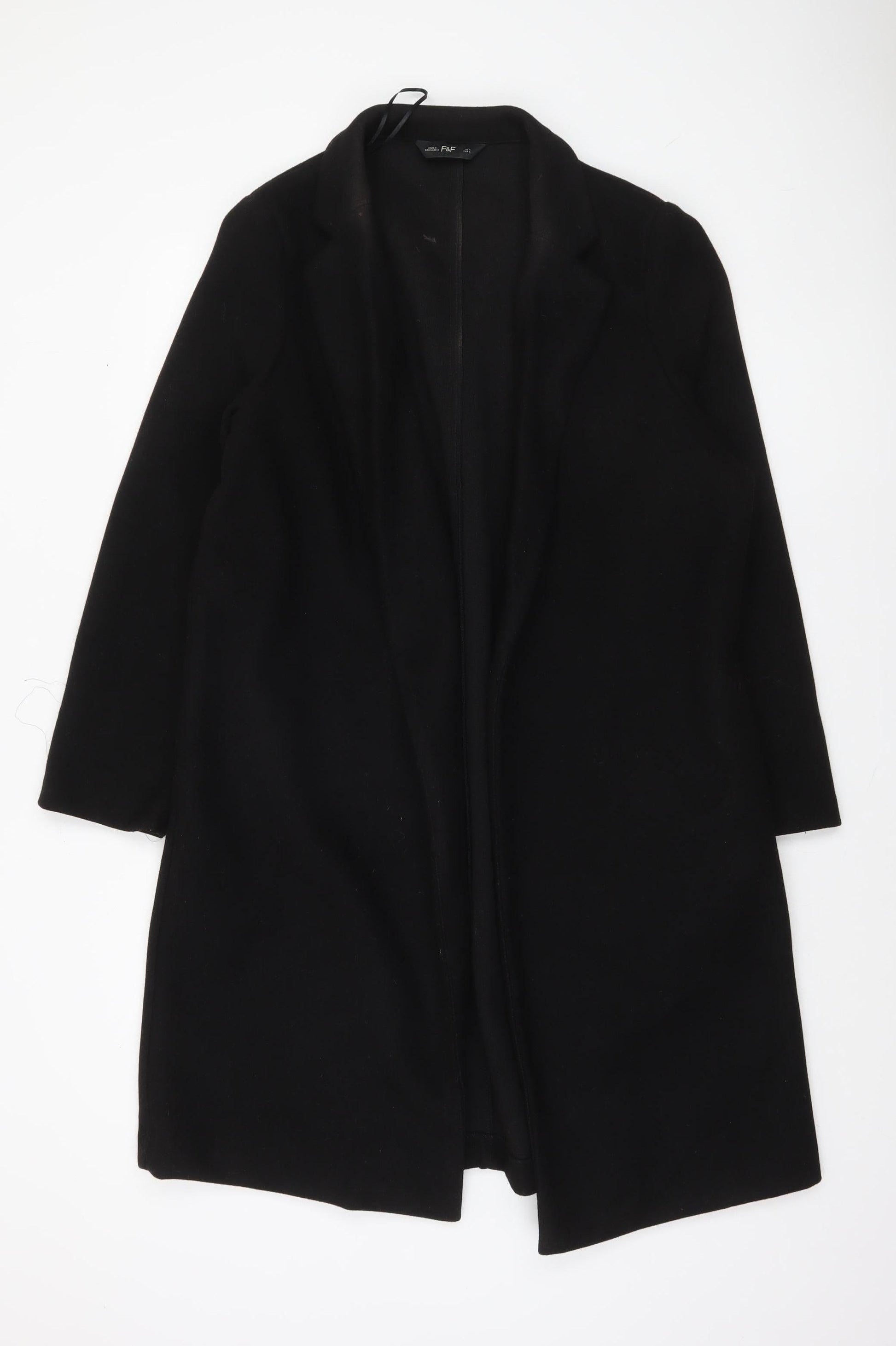 F&F Women Black Mid-Length Overcoat Lined Open Front Coat Size L