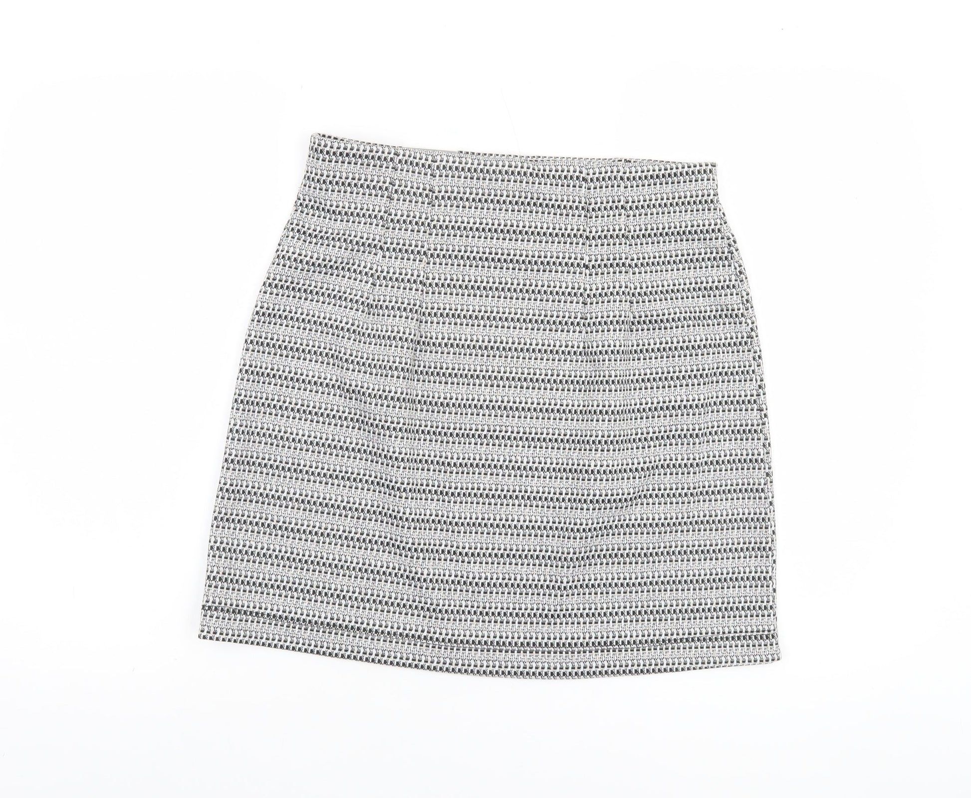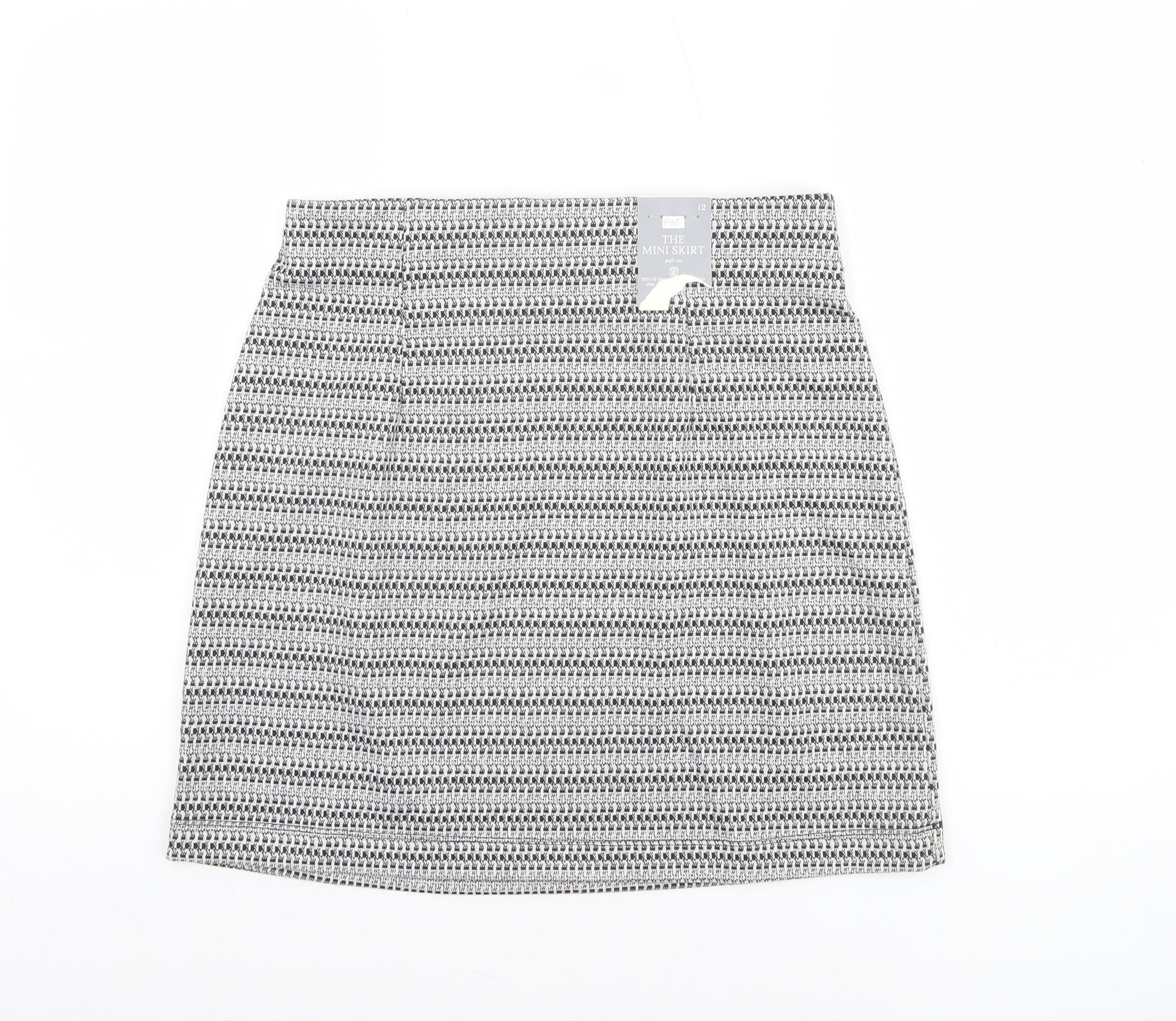 F&F Women Black Short Pencil Skirt Size 12 Tweed Stretch Workwear