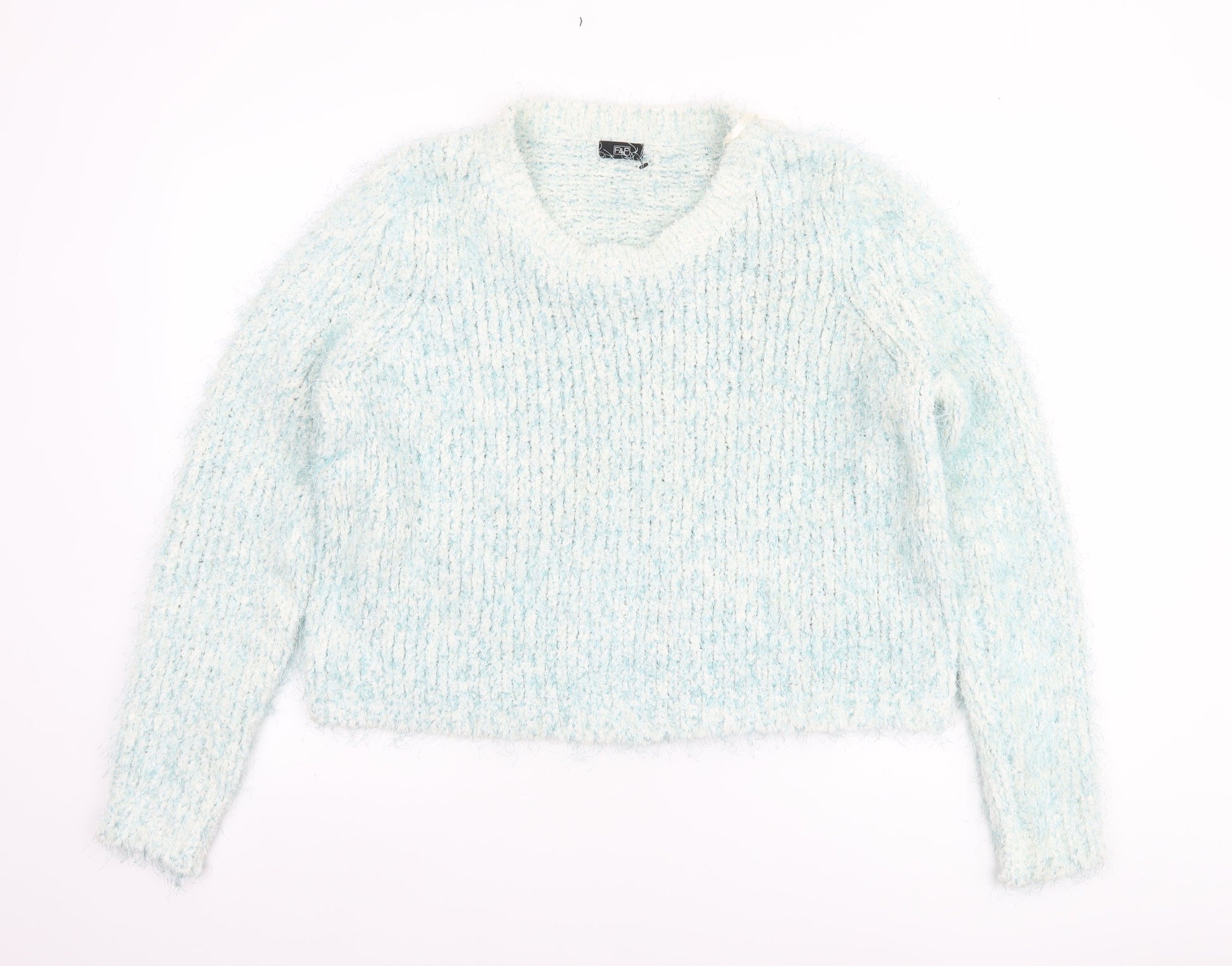 F&F Women Blue Chunky-Knit Crew Neck Long Sleeve Pullover Jumper Size 16