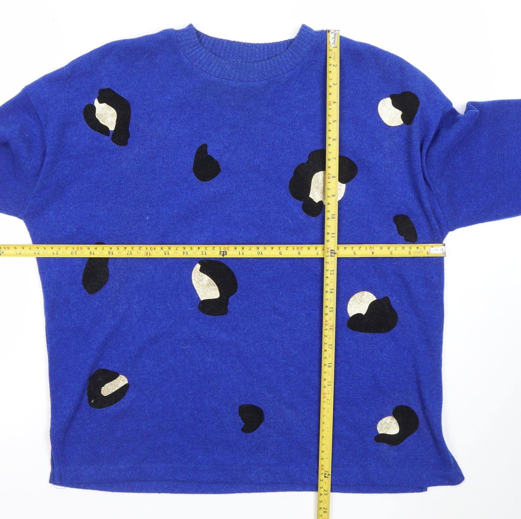 F&F Women Blue Leopard Print Relaxed Pullover Jumper UK M