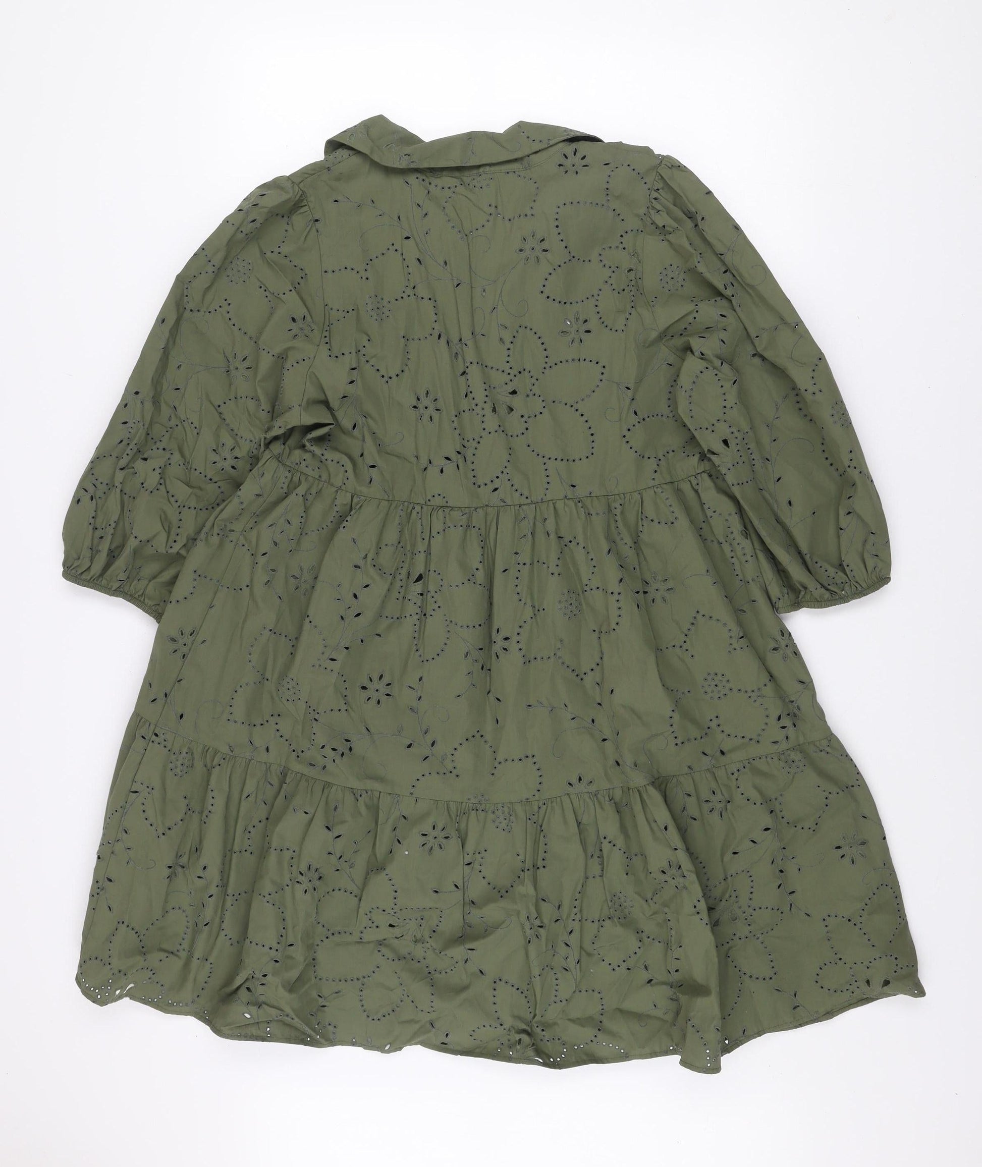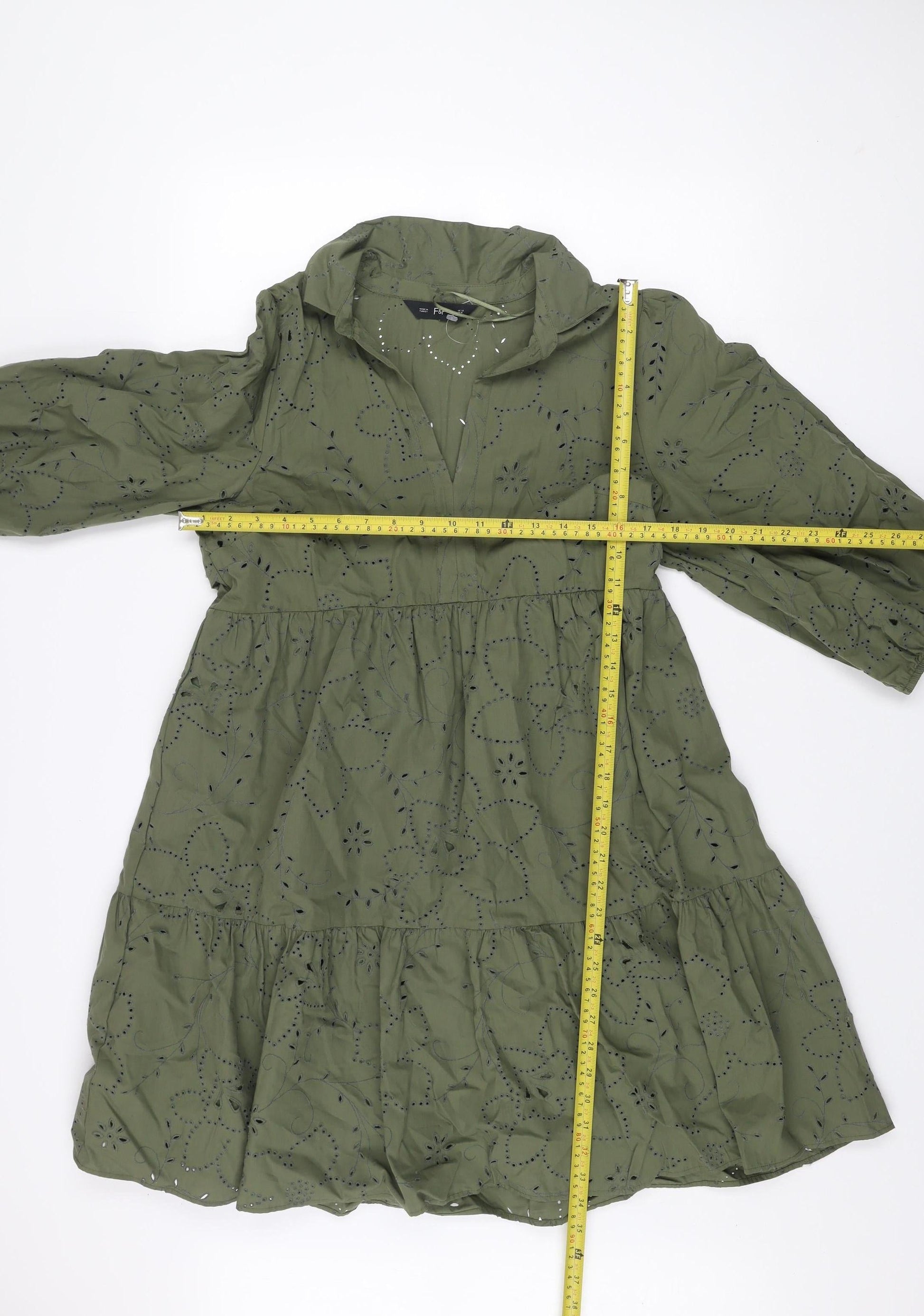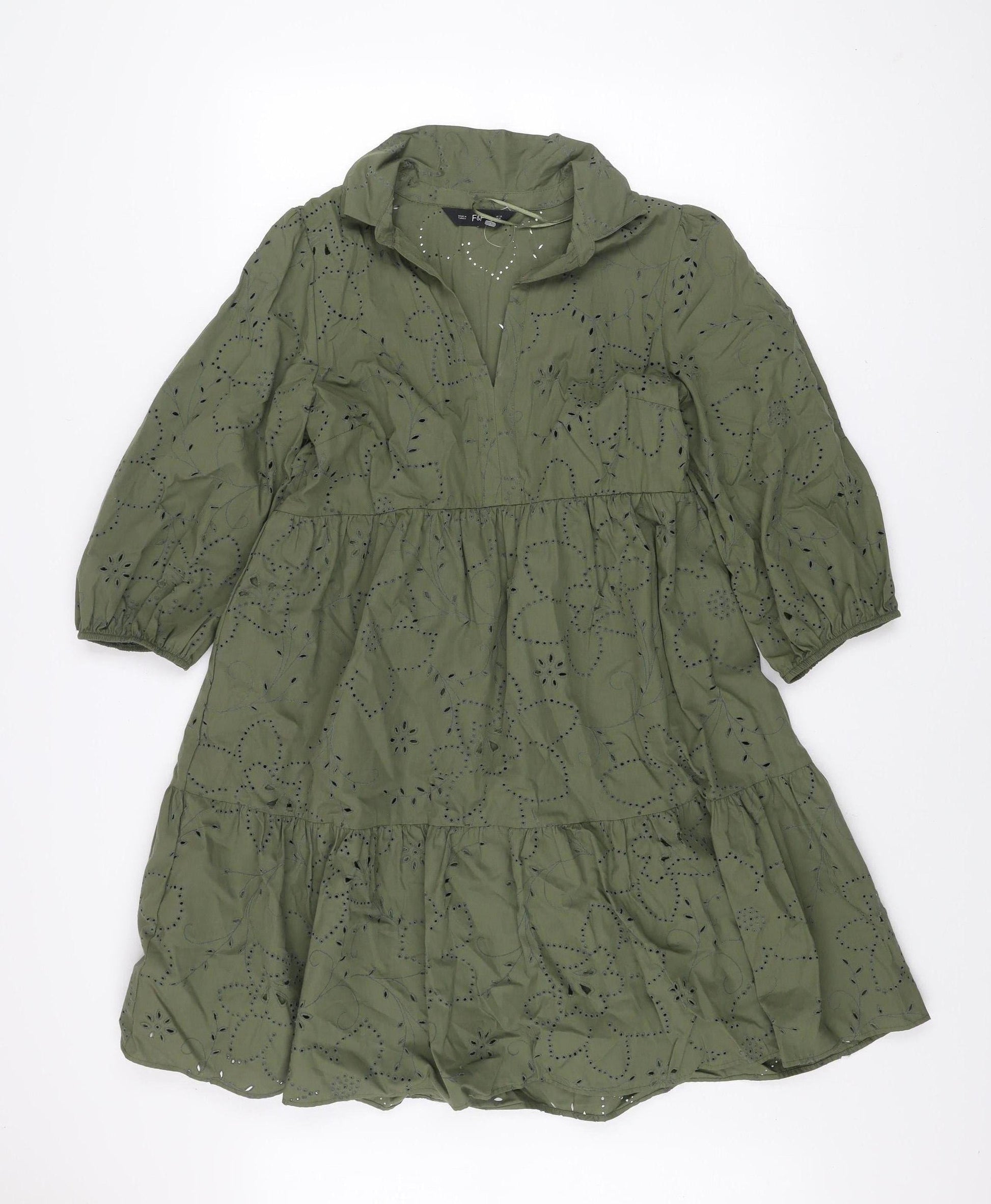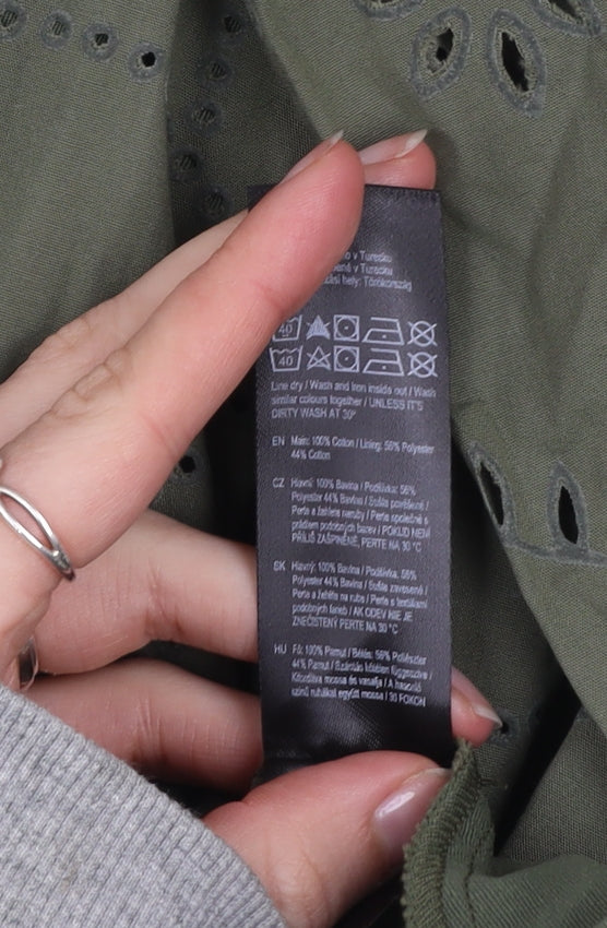 F&F Women Green Broderie Anglaise A-Line Dress Size 12