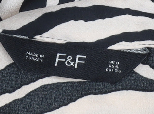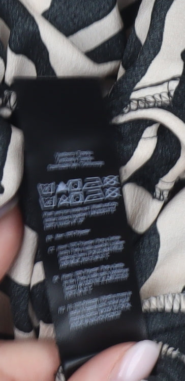 F&F Women’s Black Beige Animal Print Collared Wide Leg Jumpsuit Size 8