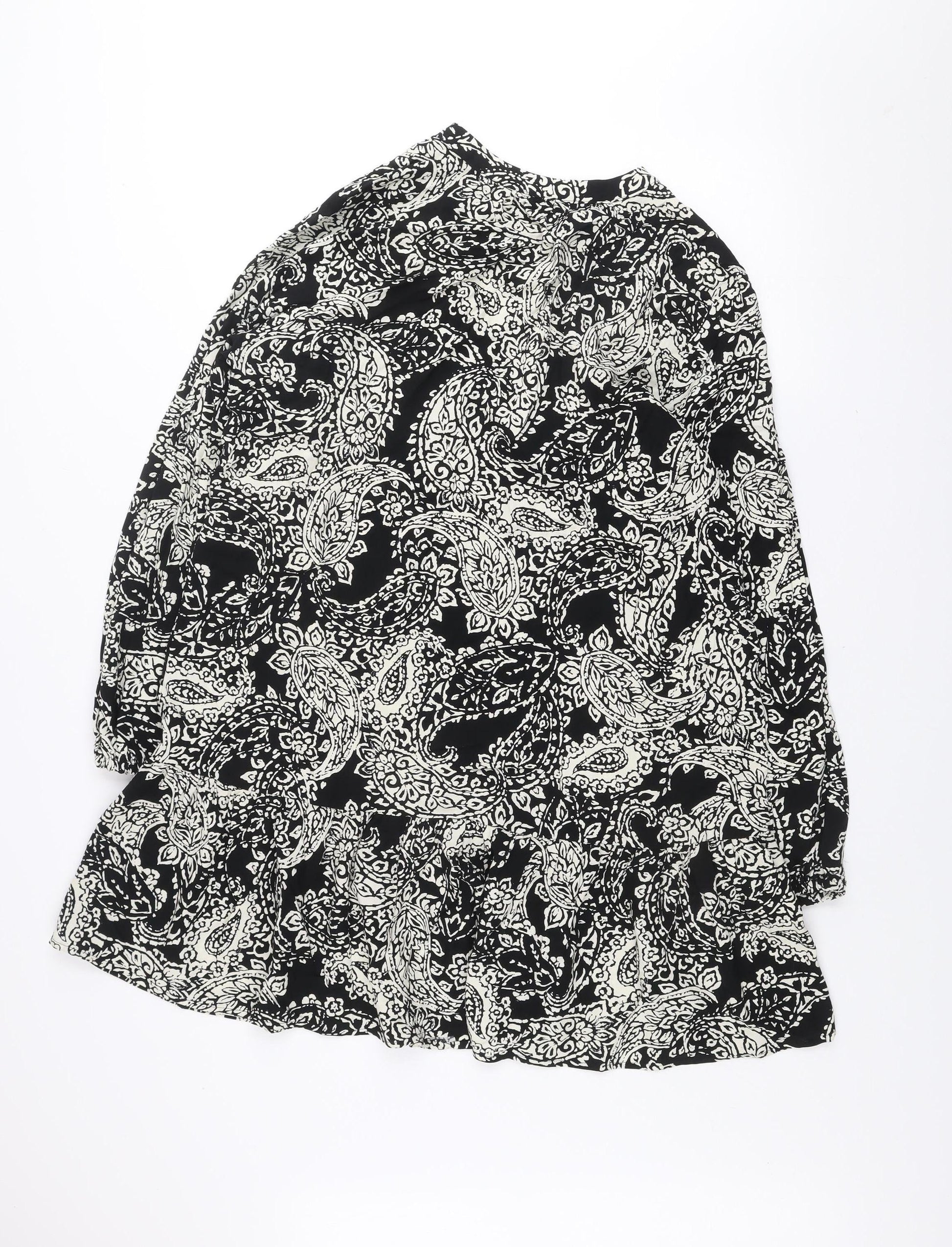 F&F Women’s Black Paisley Shift Dress Size 16 Viscose Long Sleeve