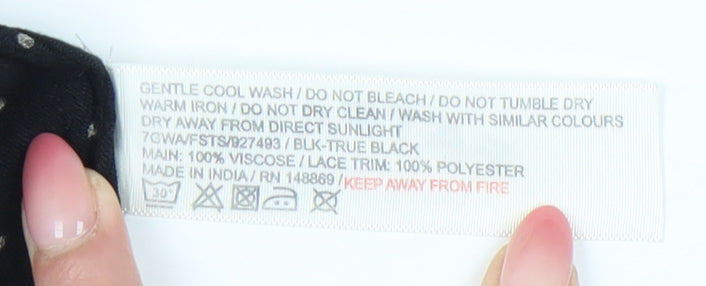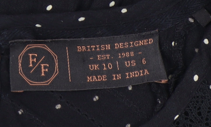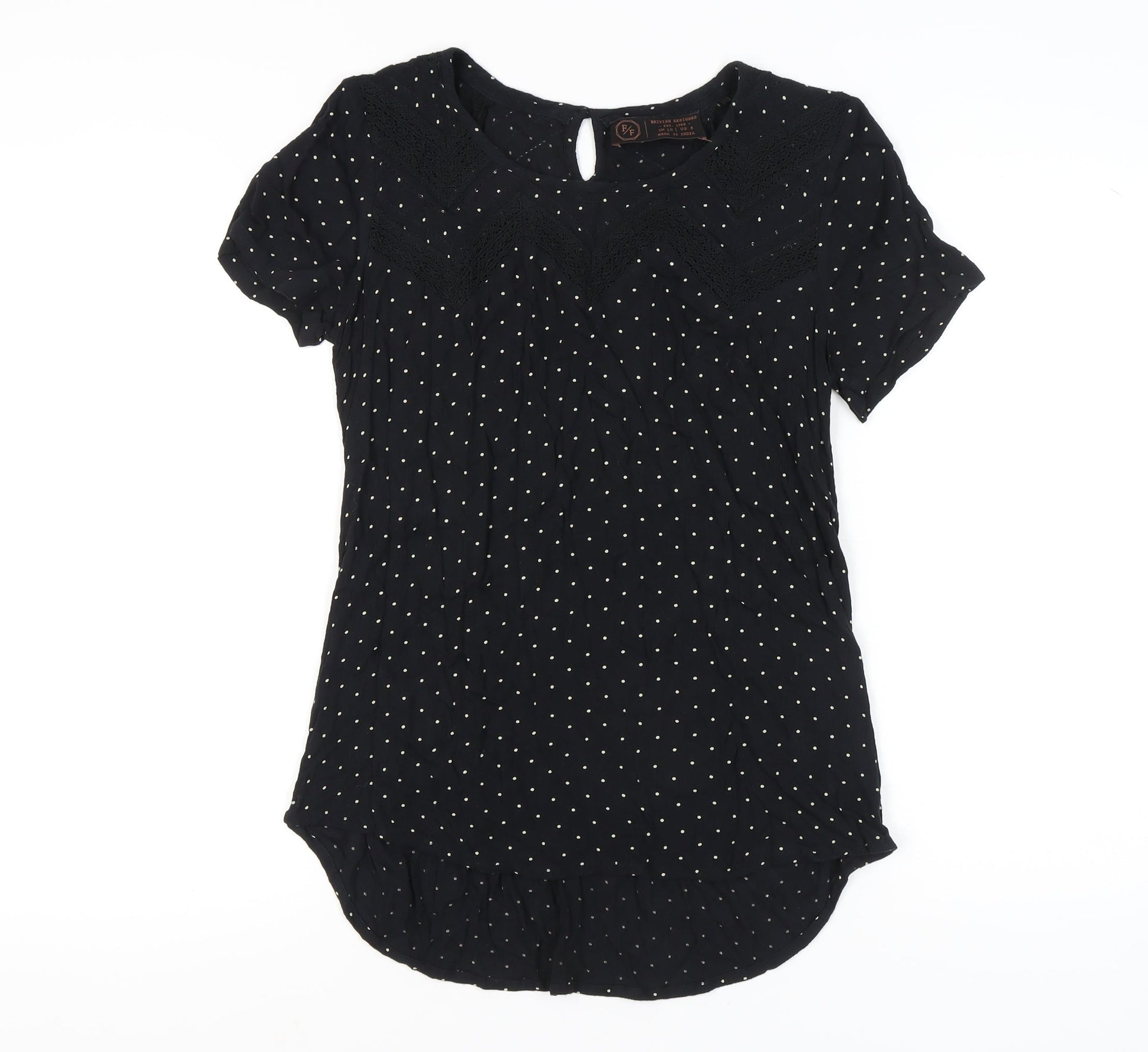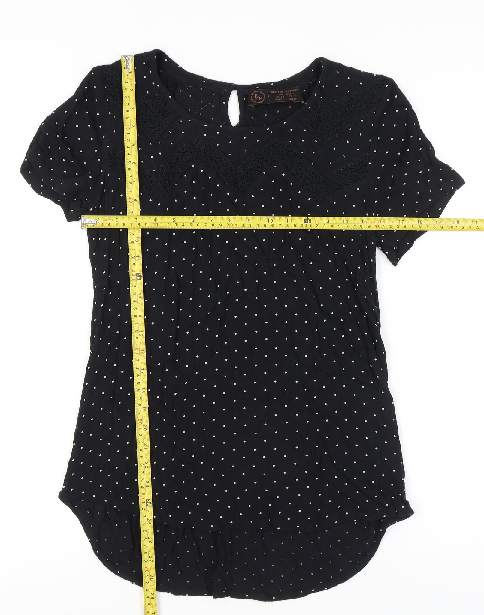 F&F Women’s Black Polka Dot Crochet Trim Tunic Blouse Size 10