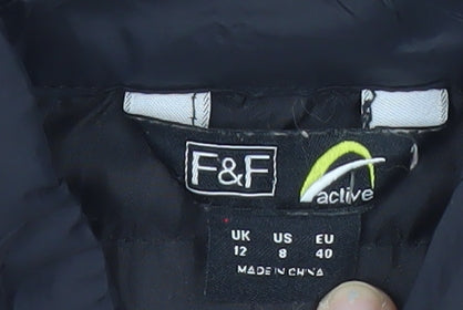 F&F Women’s Black Puffer Waistcoat Size 12 Sleeveless Zip Front
