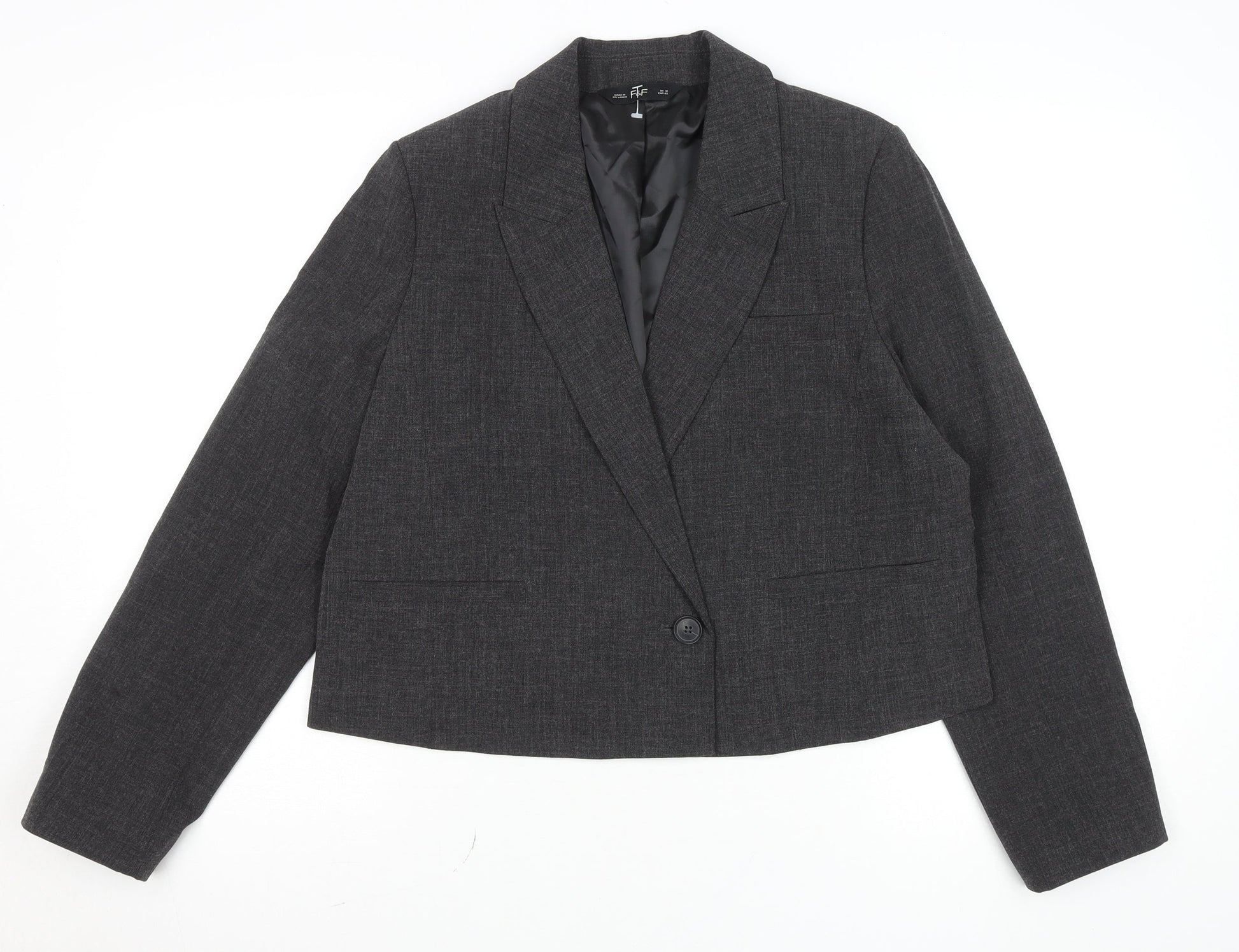 F&F Women’s Grey Cropped Blazer Jacket UK 12 Tailored One-Button