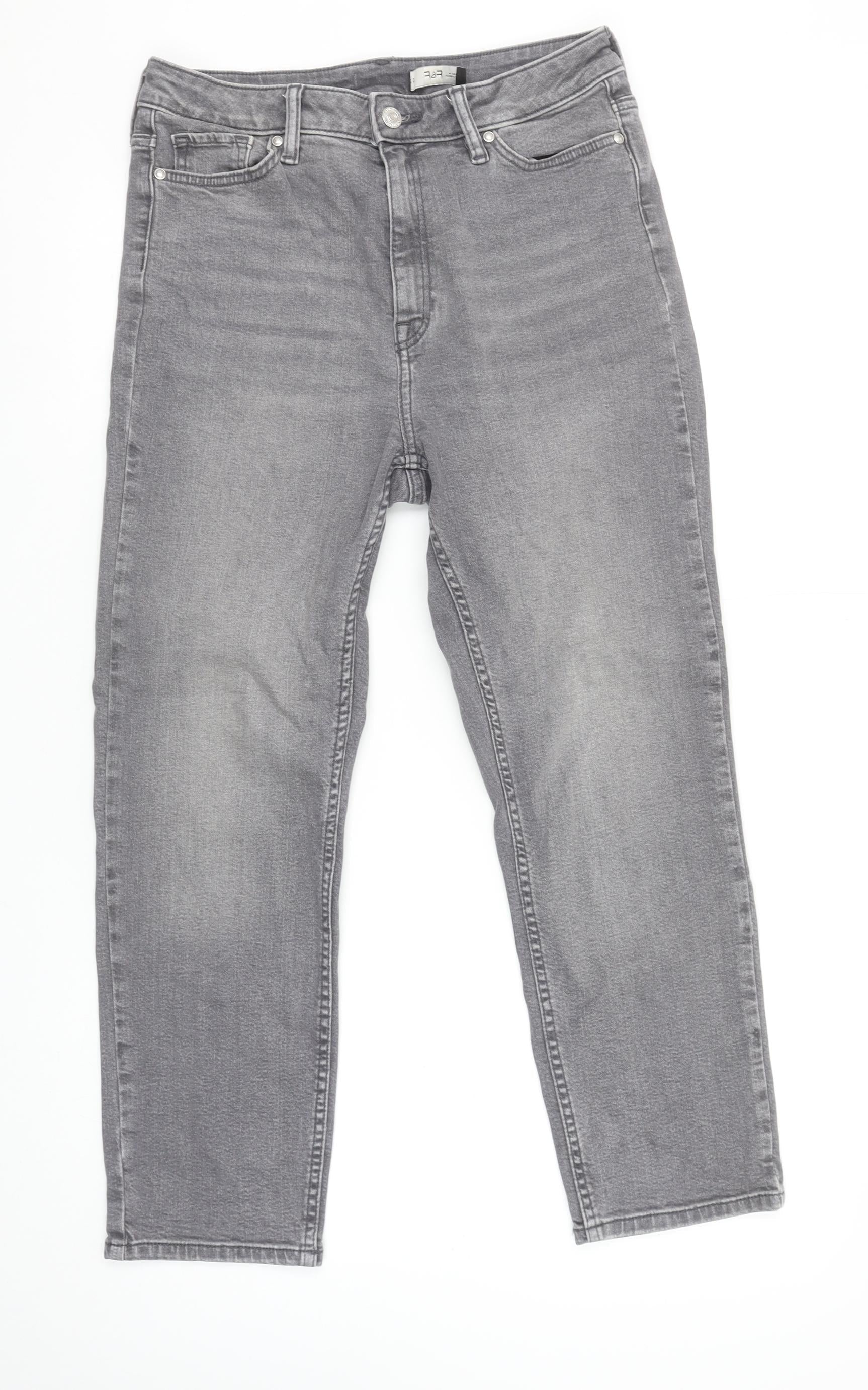 F&F Women’s Grey High Rise Slim Fit Straight Jeans UK 10S
