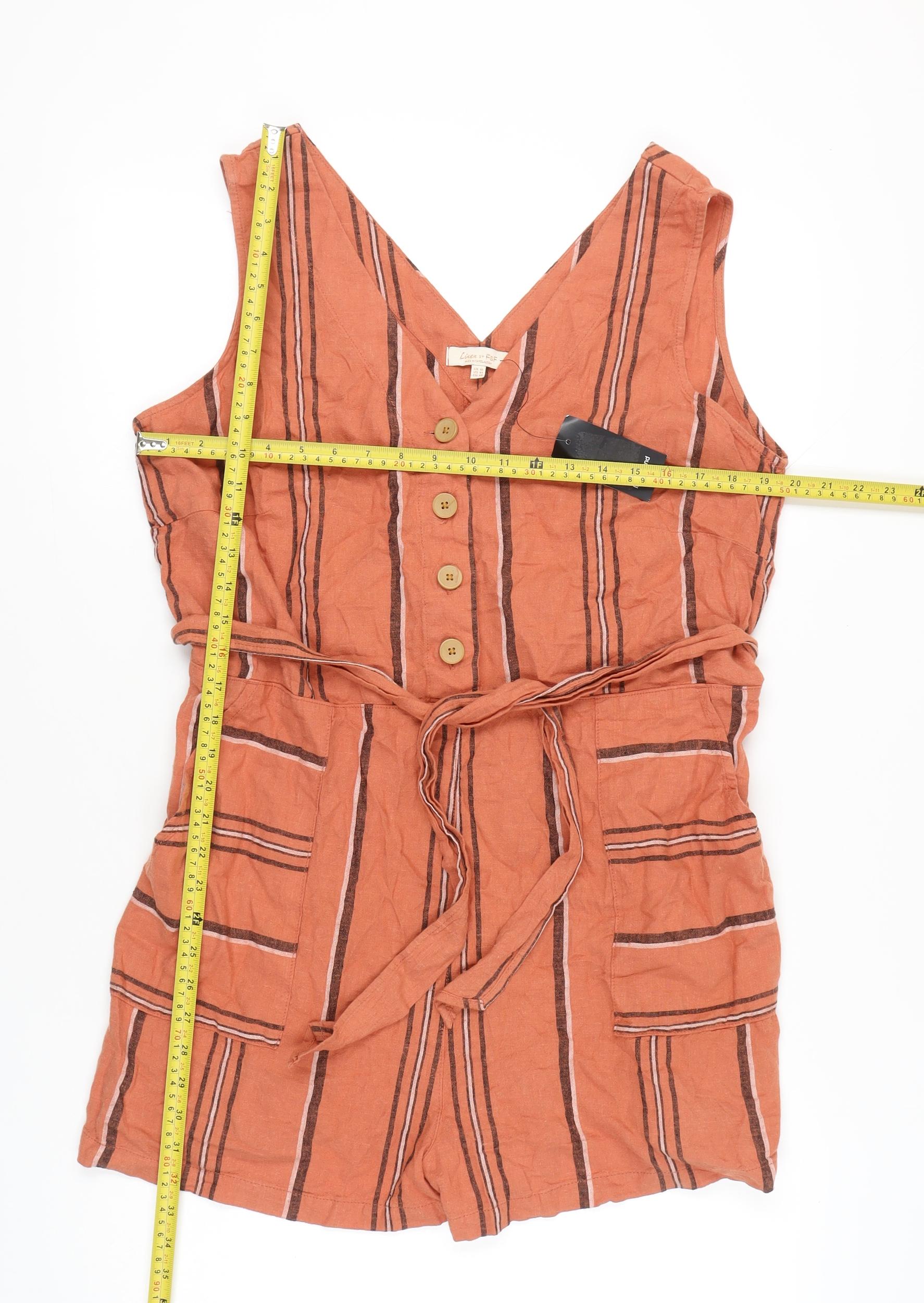 F&F Women’s Orange Striped Linen Blend Playsuit Size 18
