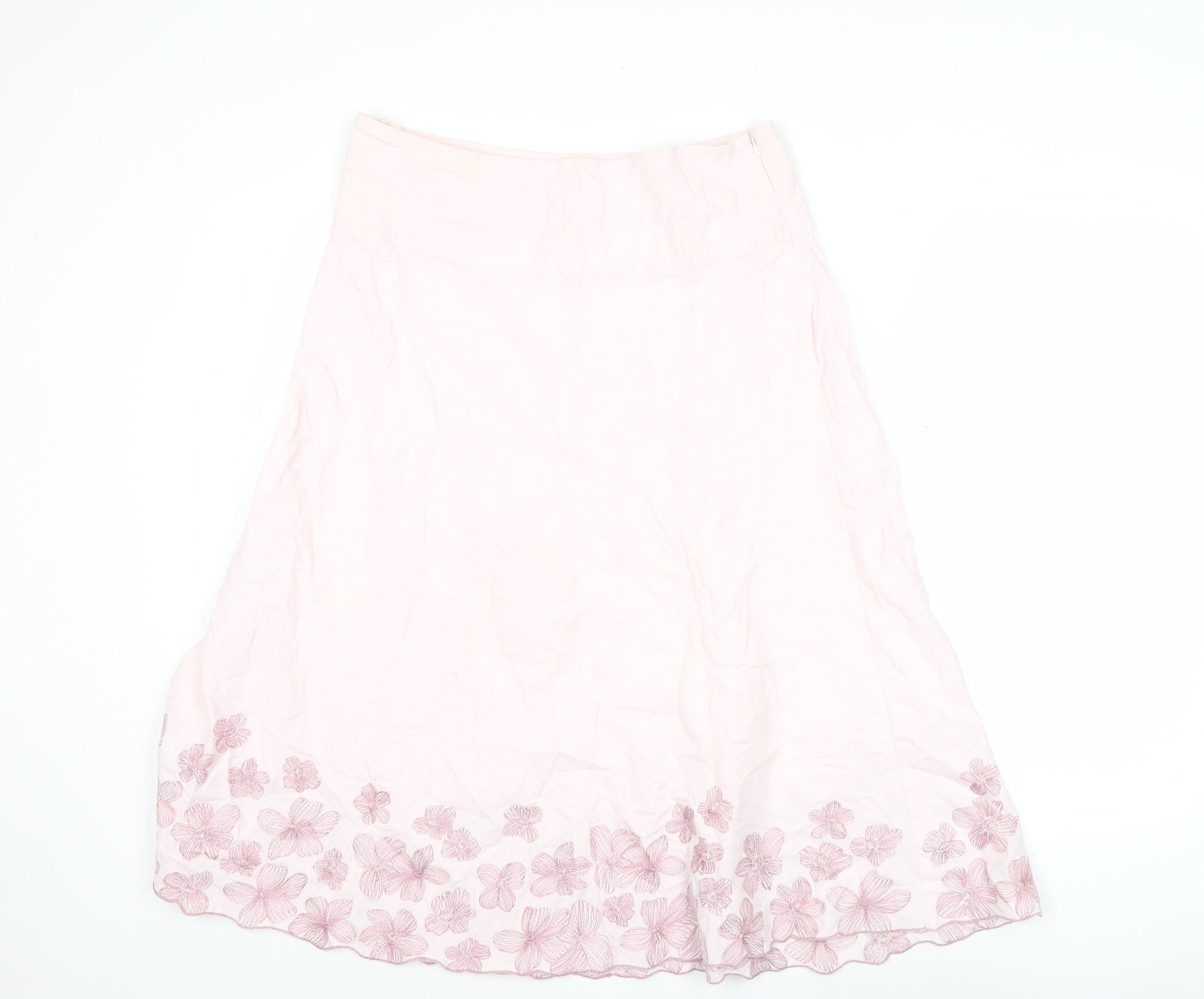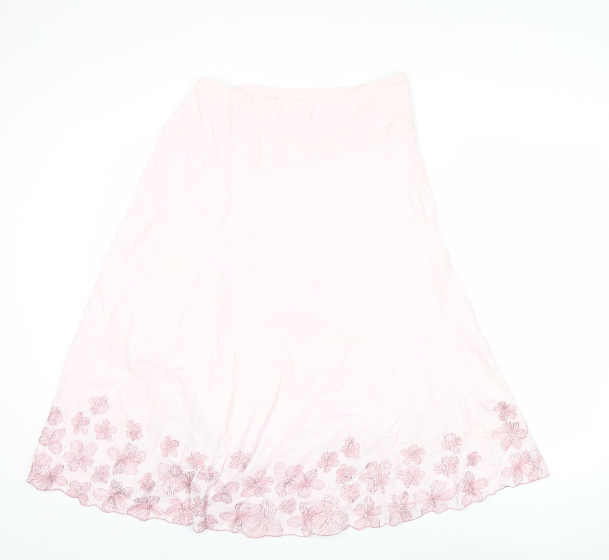F&F Women’s Pink Floral Embroidered A-Line Midi Skirt Size 14