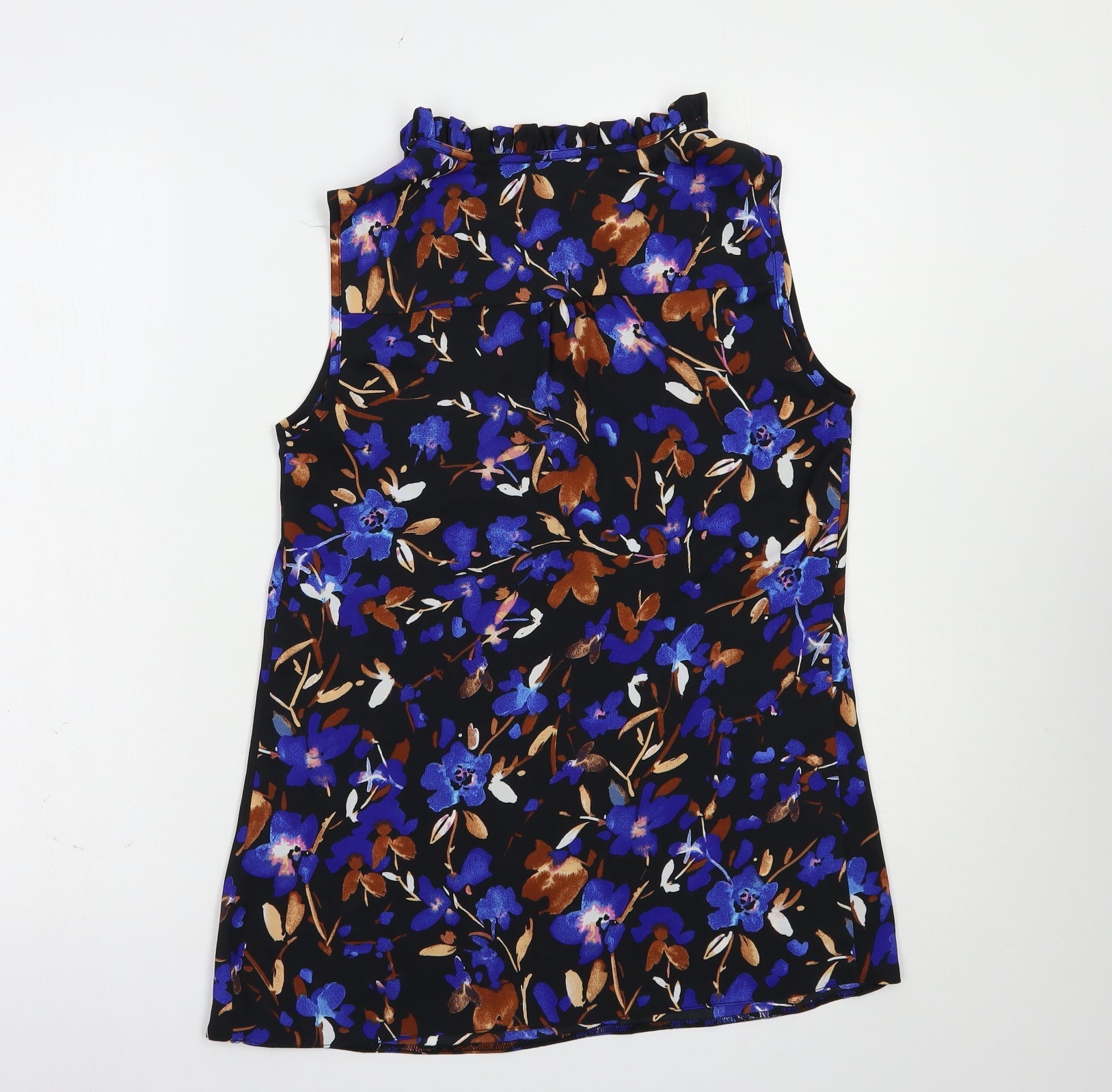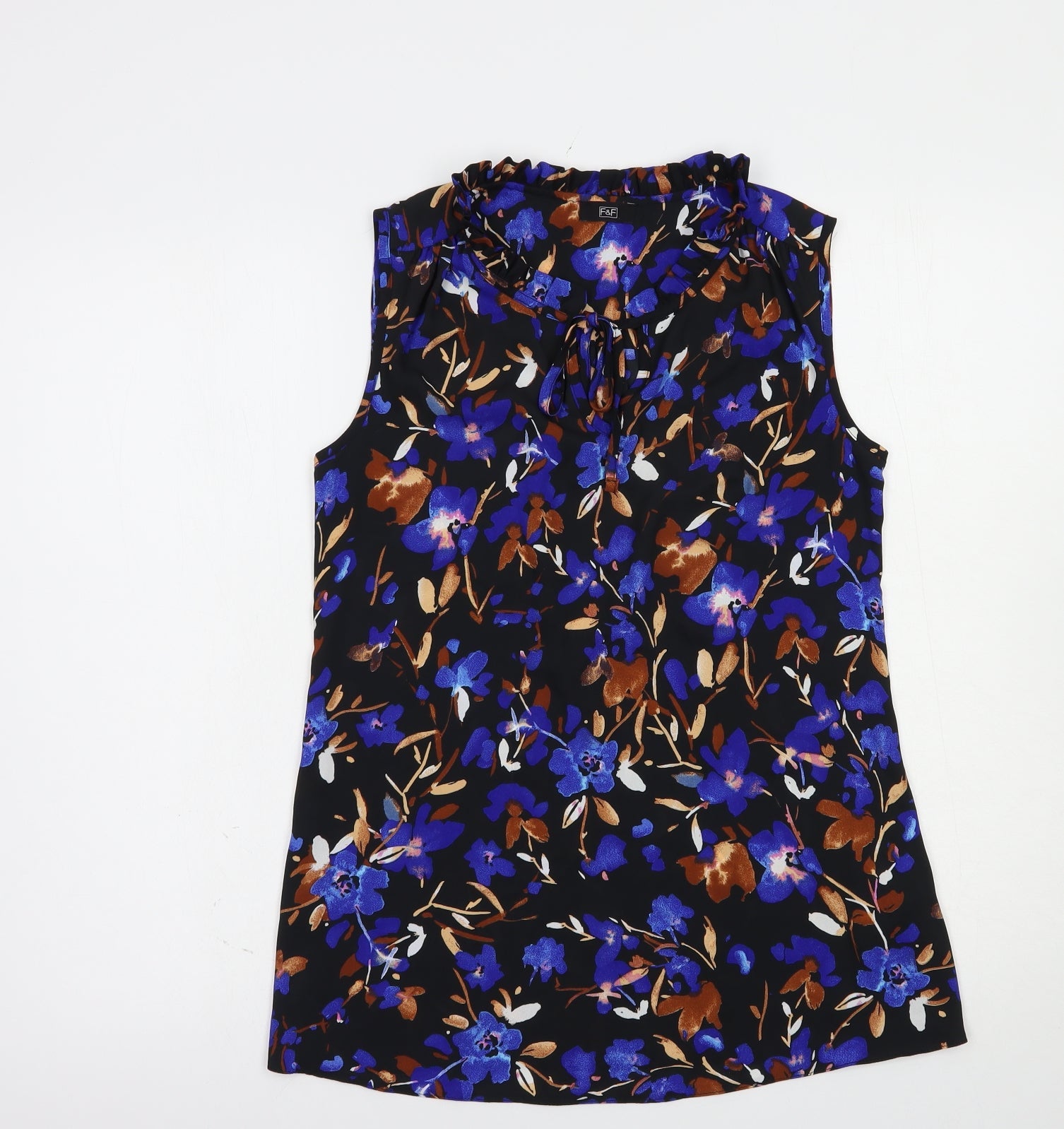 F&F Womens Beige Floral Polyester Basic Blouse Size 8 V-Neck