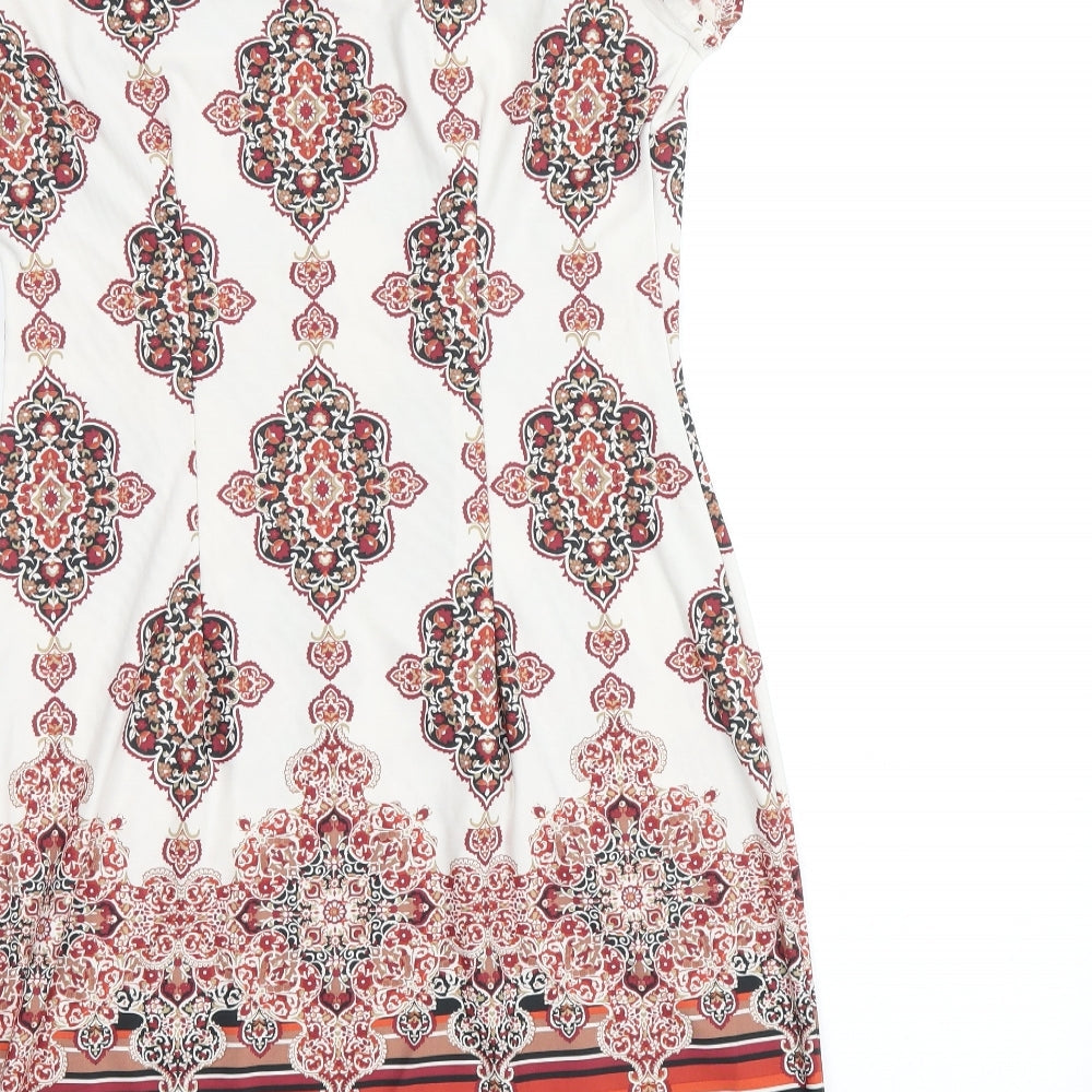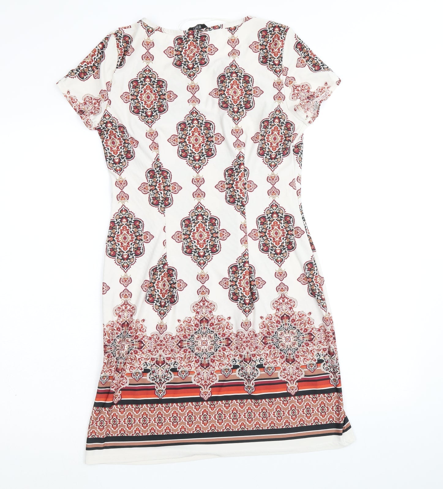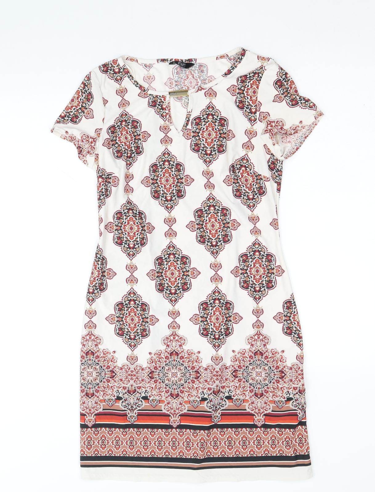 F&F Womens Beige Geometric Polyester Shift Size 6 Round Neck Pullover
