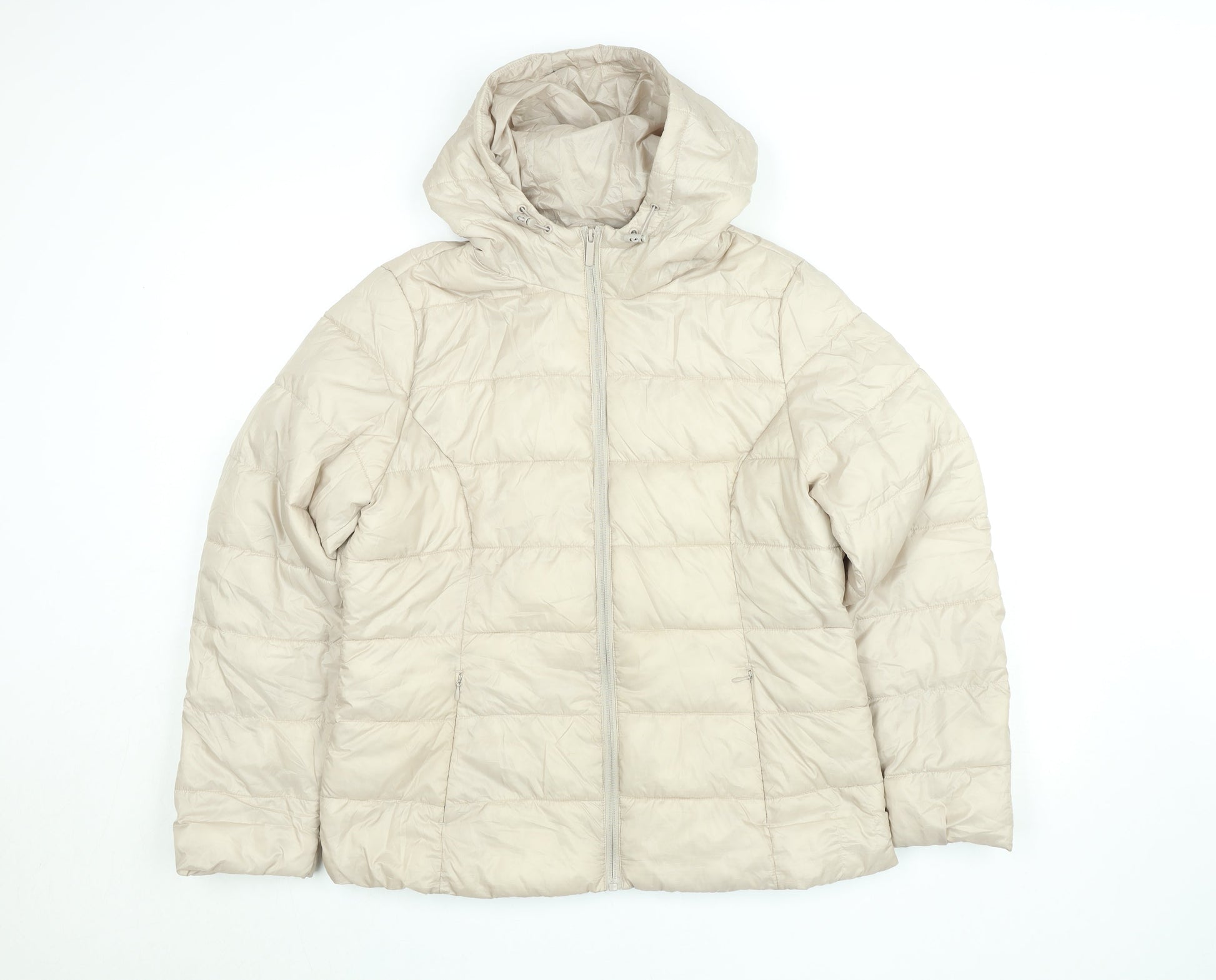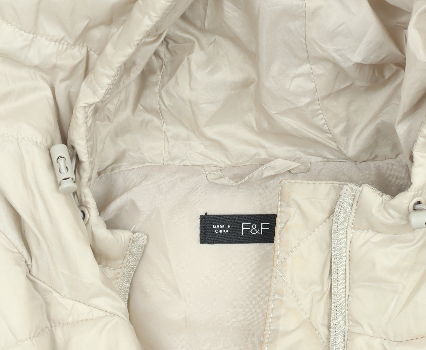 F&F Women's Beige Hooded Puffer Jacket Size 12 Quilted Mid-Length