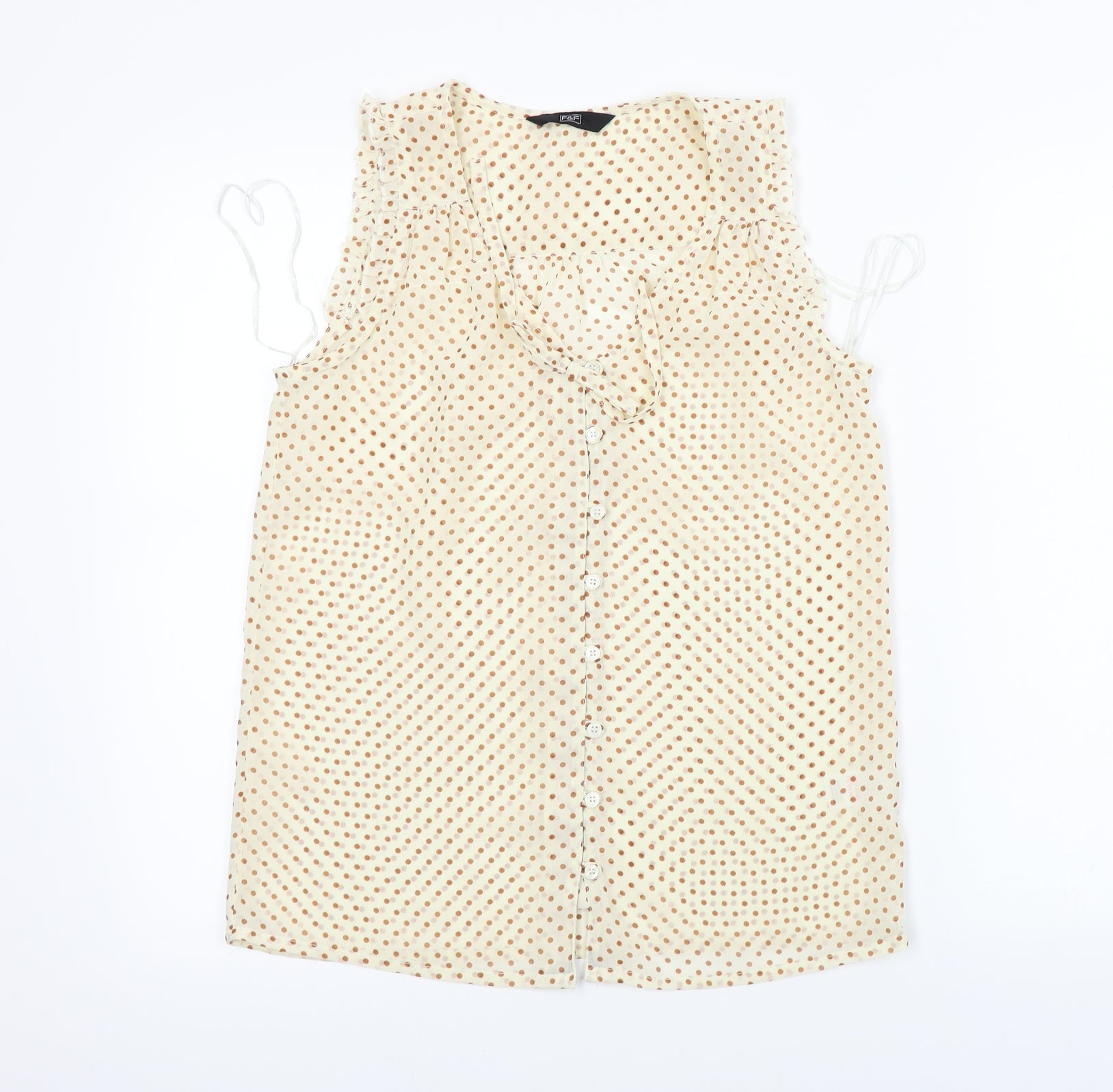 F&F Womens Beige Polka Dot Basic Button-Up Size 8