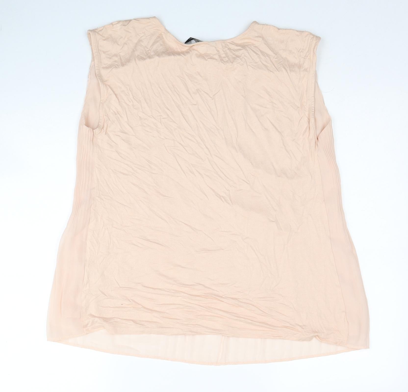 F&F Womens Beige Polyester Basic Blouse Size 12 Round Neck - Lace Detail