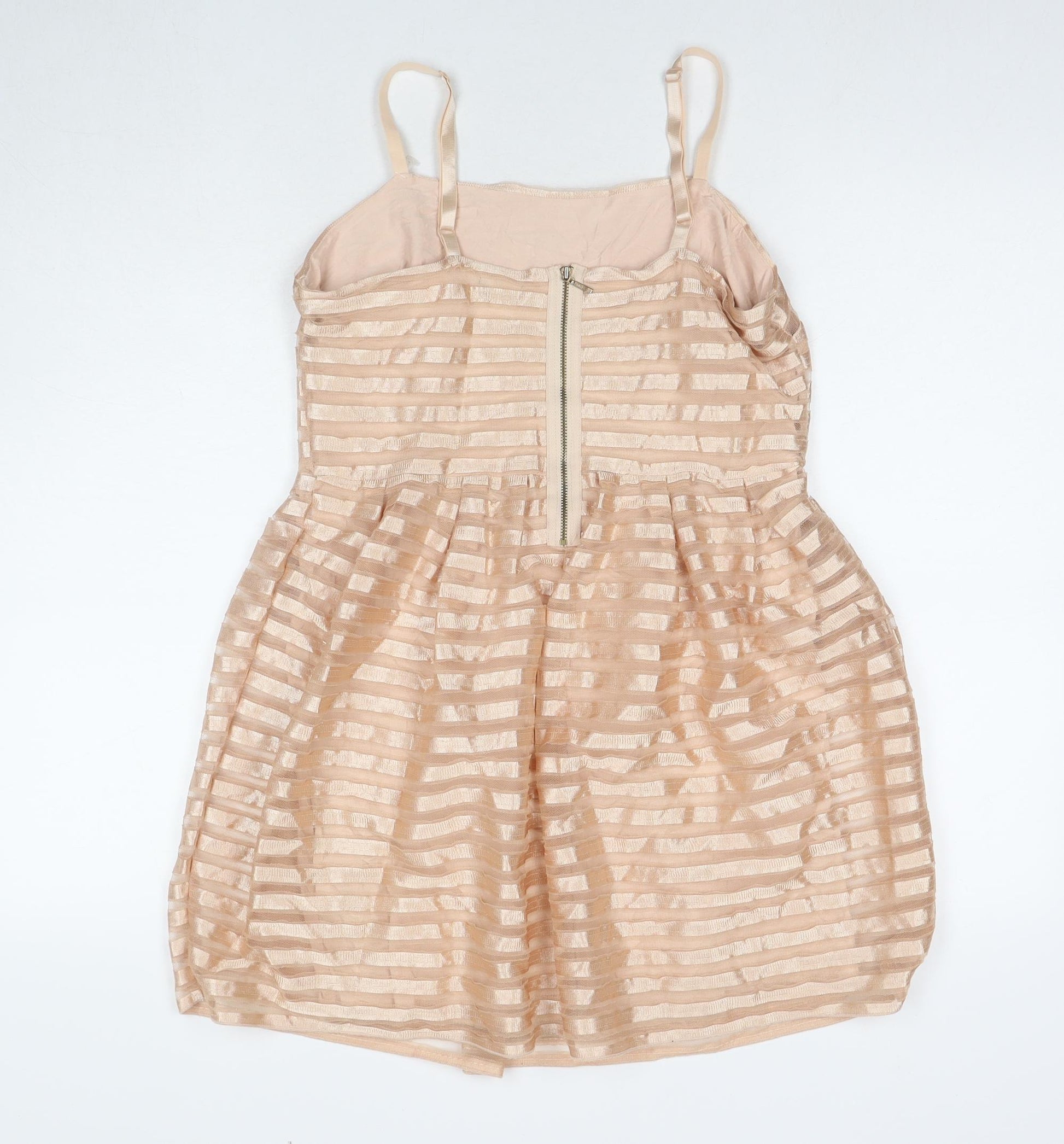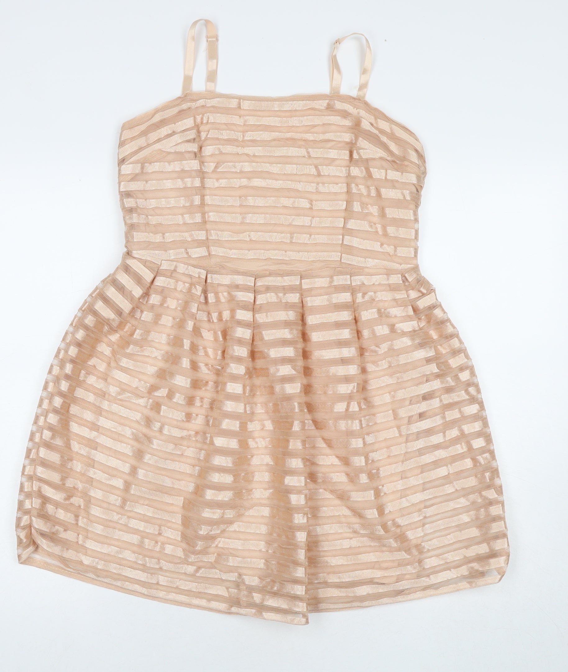 F&F Womens Beige Polyester Fit & Flare Size M Square Neck Pullover