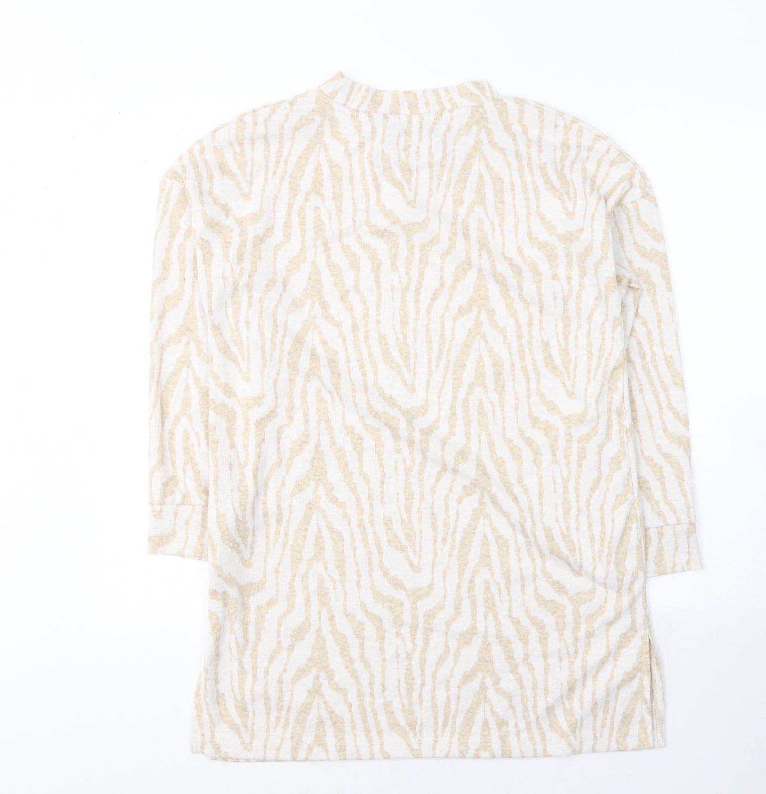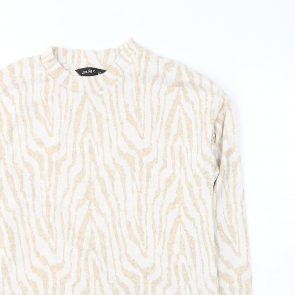 F&F Womens Beige Round Neck Animal Print Polyester Pullover Jumper Size 12