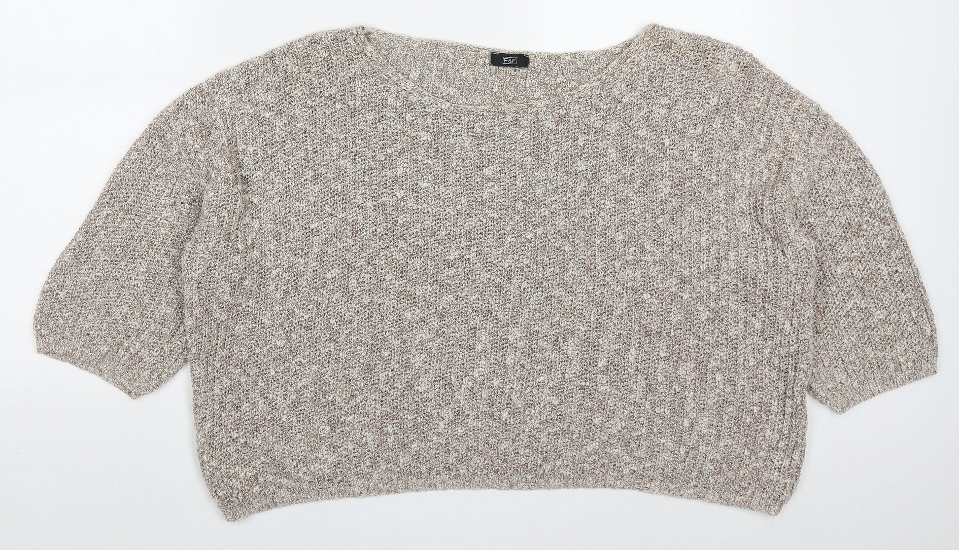 F&F Womens Beige Round Neck Cotton Pullover Jumper Size 18