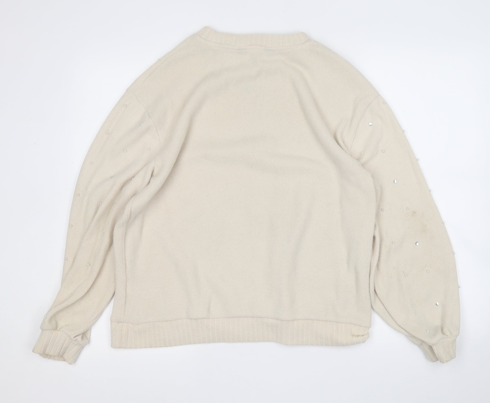 F&F Womens Beige Round Neck Polyester Pullover Jumper Size 14