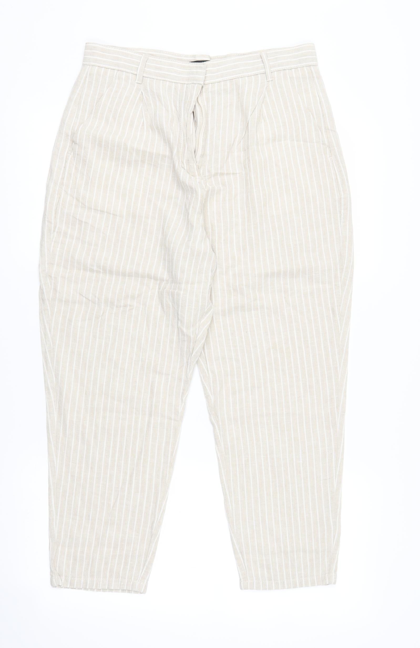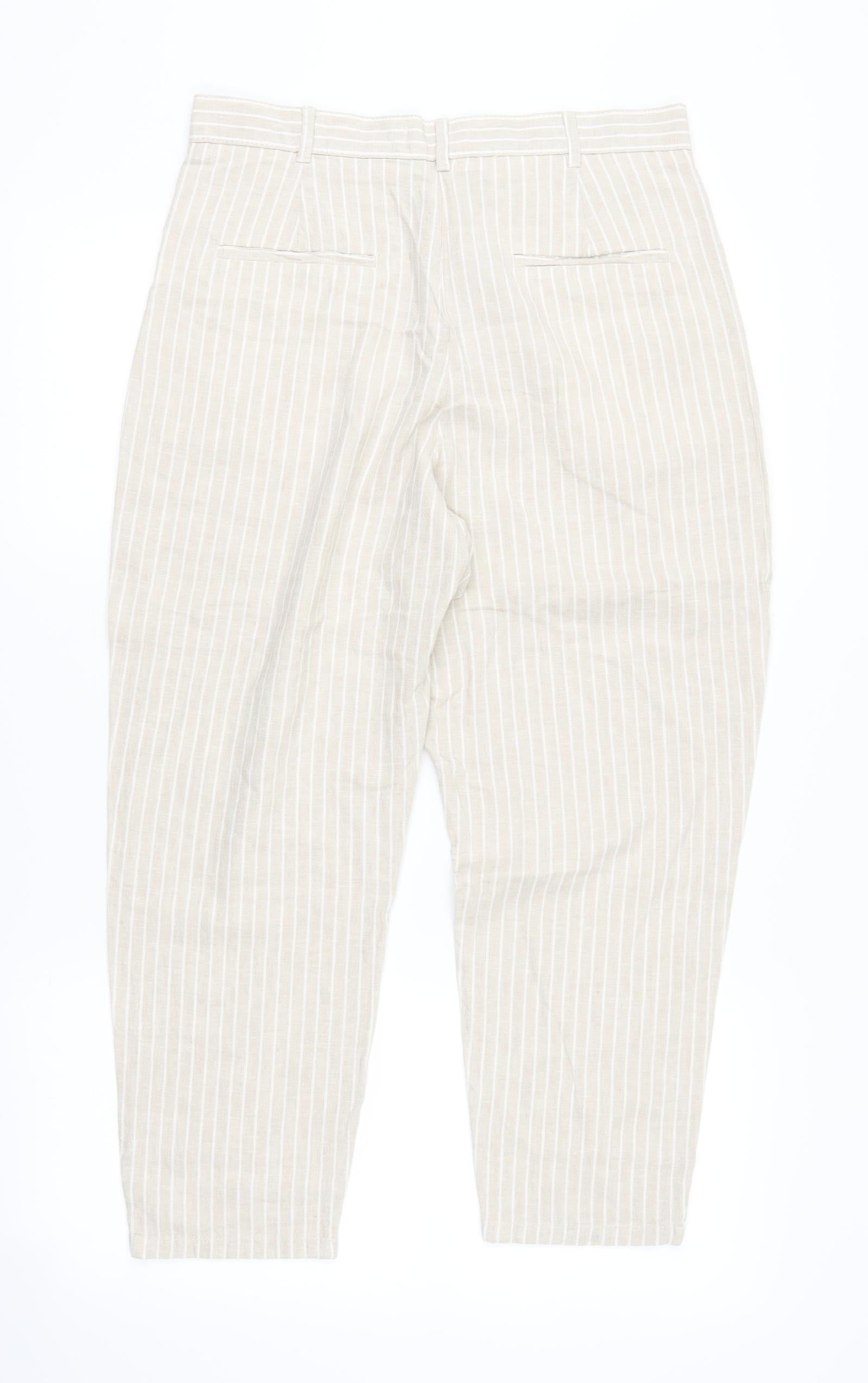 F&F Womens Beige Striped Trousers Size 10 L23 in