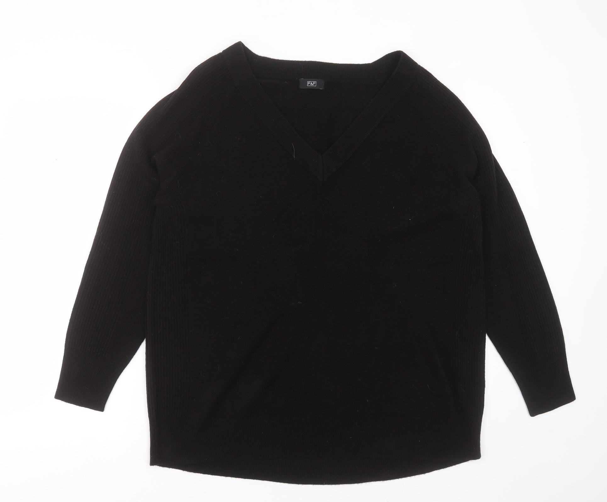 F&F Womens Beige V-Neck Acrylic Pullover Jumper Size 14