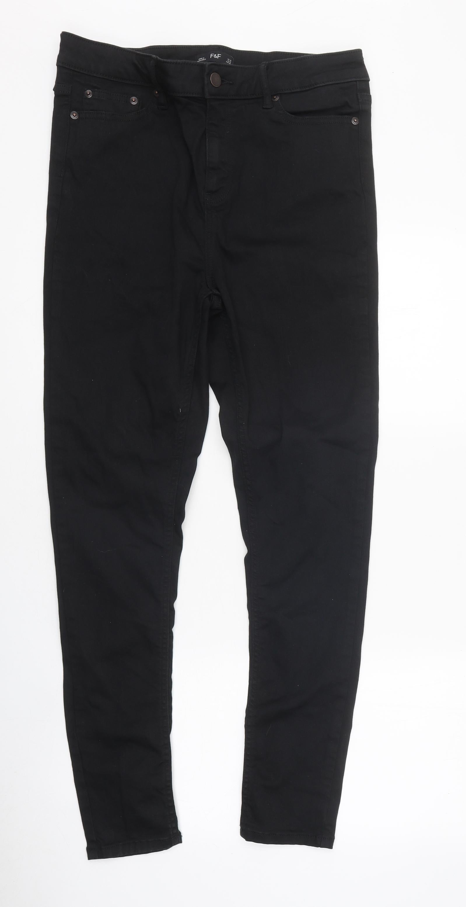 F&F Womens Black 100% Cotton Skinny Jeans Size 14 L32 in Regular Zip