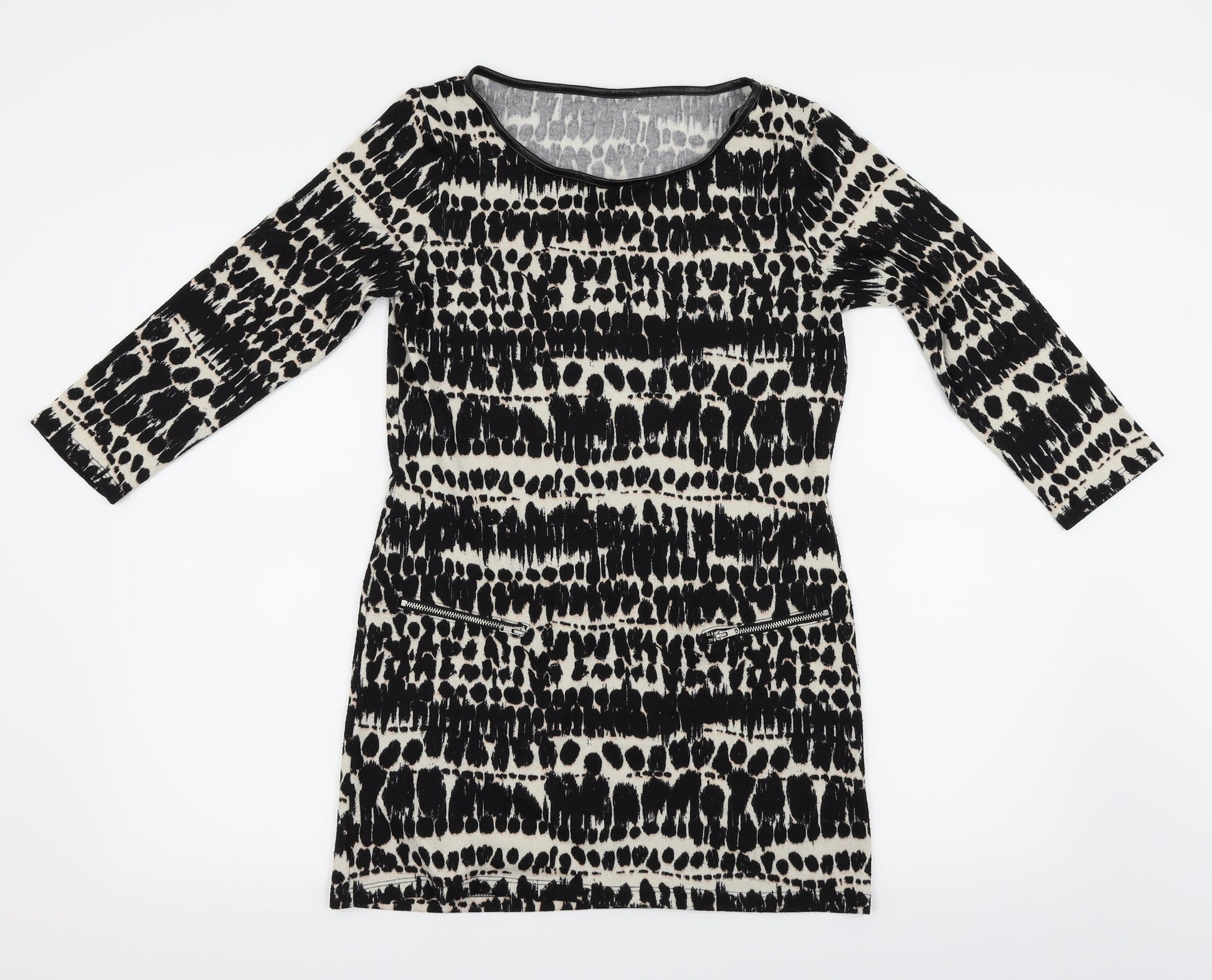 F&F Womens Black Animal Print Basic Blouse Size 8