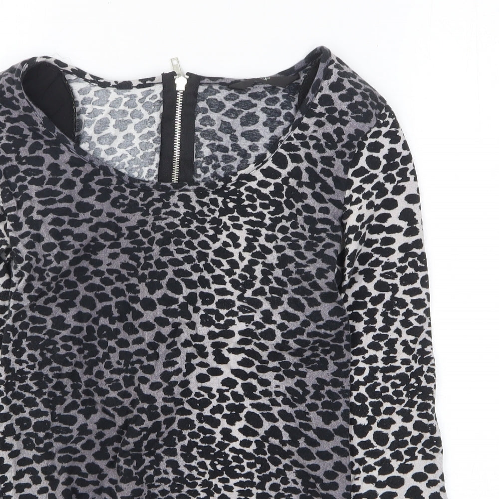F&F Womens Black Animal Print Cotton Basic T-Shirt Size 10 Boat Neck - Leopard Print
