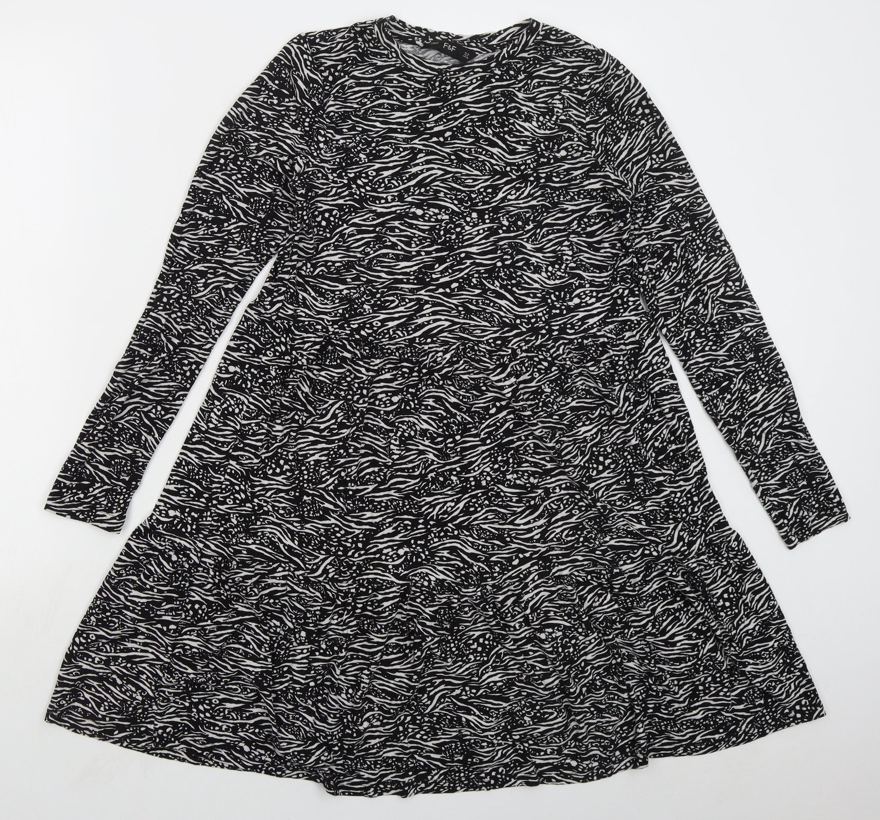 F&F Womens Black Animal Print Viscose A-Line Size 10 Crew Neck Pullover