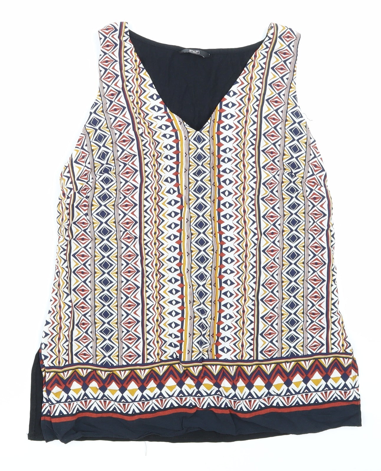 F&F Womens Black Argyle/Diamond Basic Blouse Size 10
