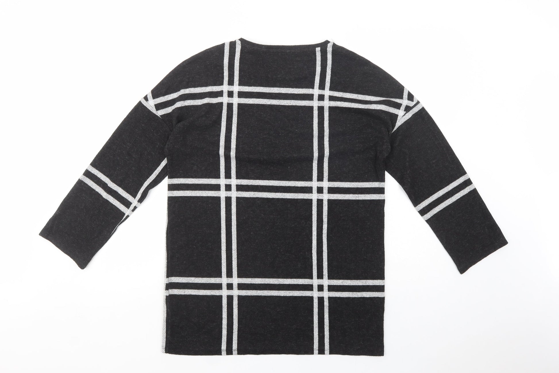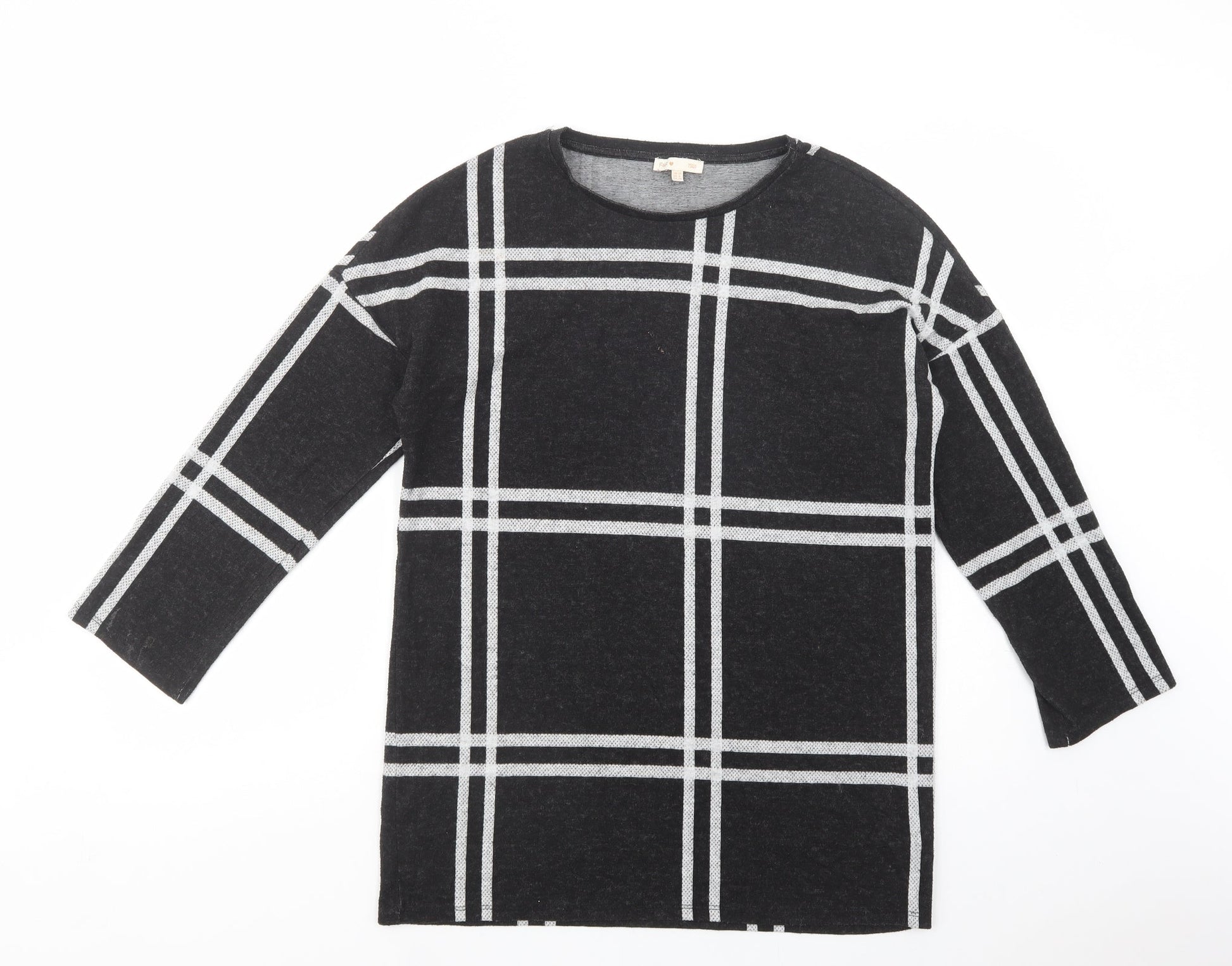 F&F Womens Black Crew Neck Plaid Polyester Tunic Jumper Size 10