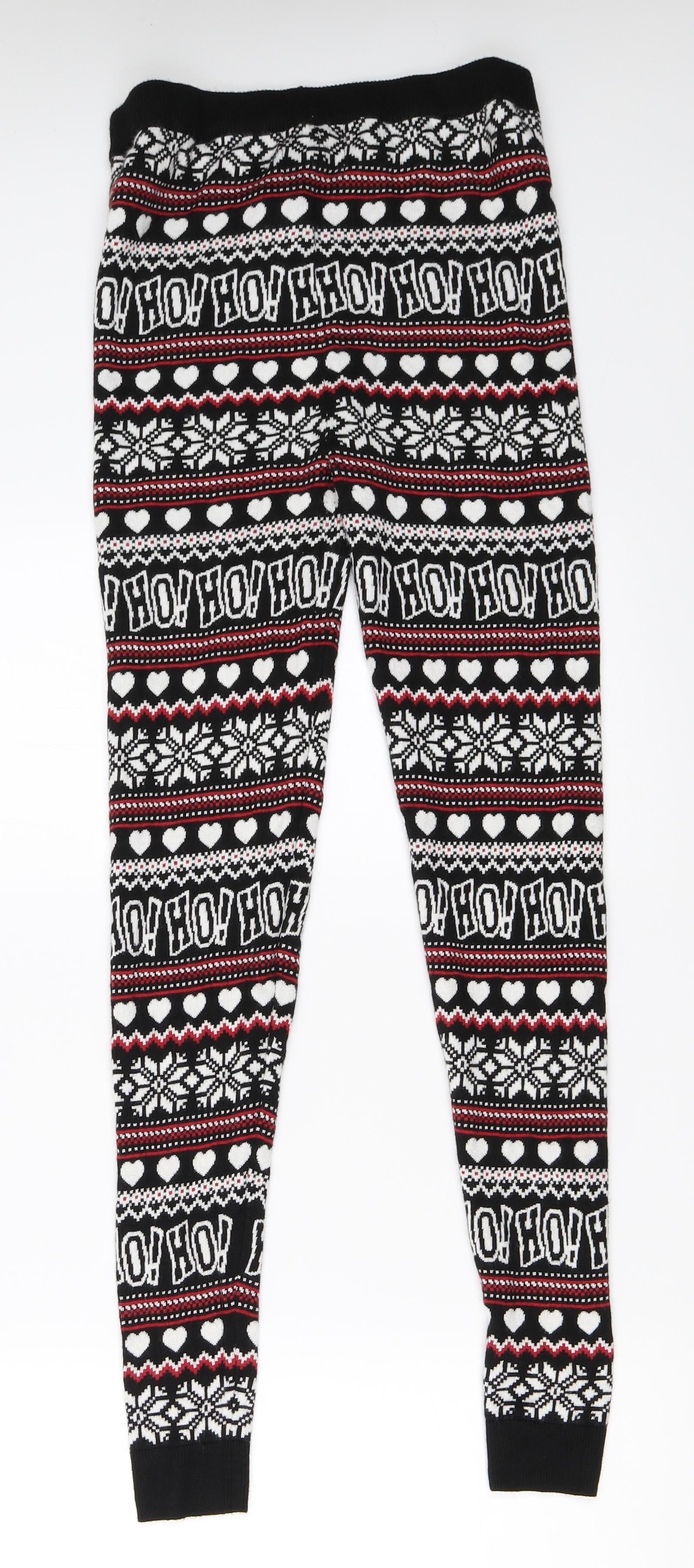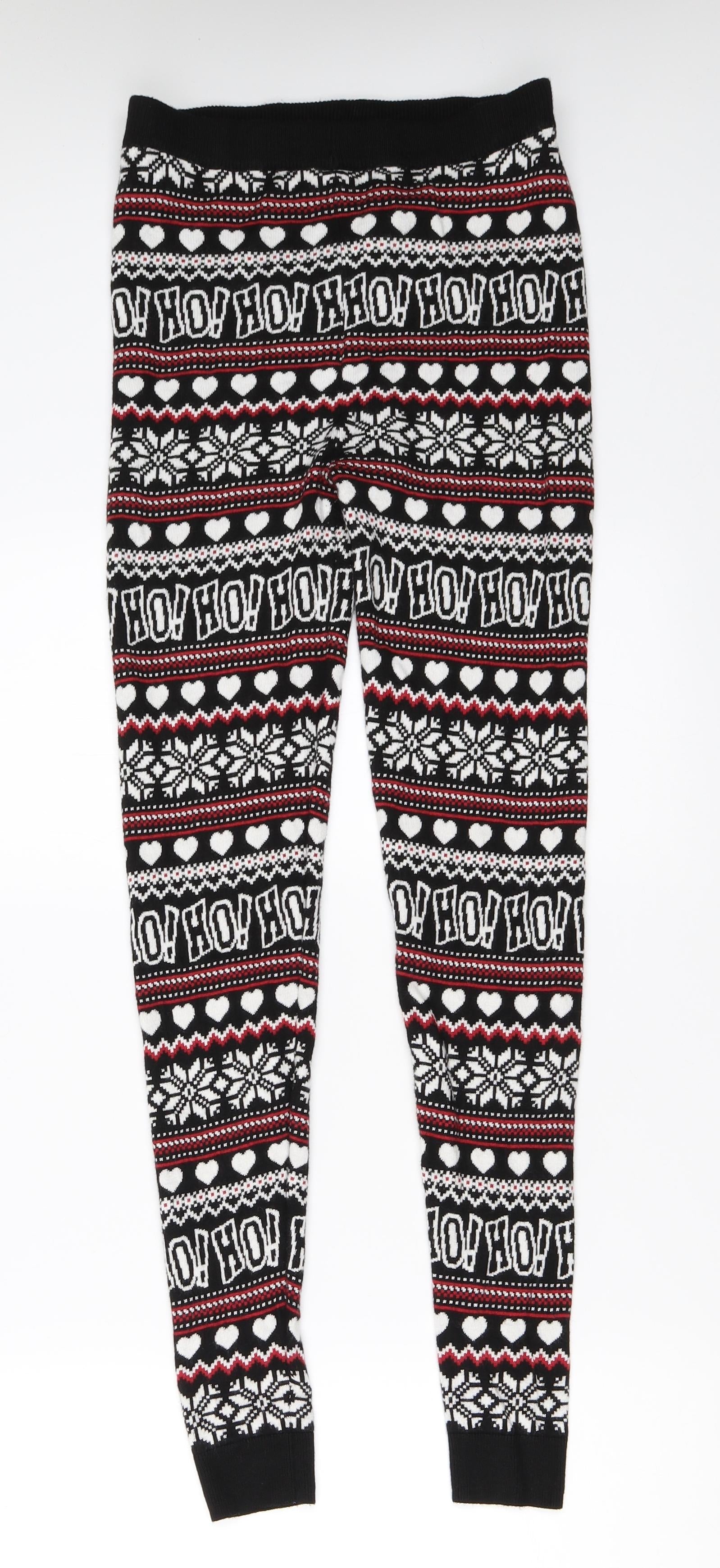 F&F Womens Black Fair Isle Capri Leggings Size 8 L28.5 in