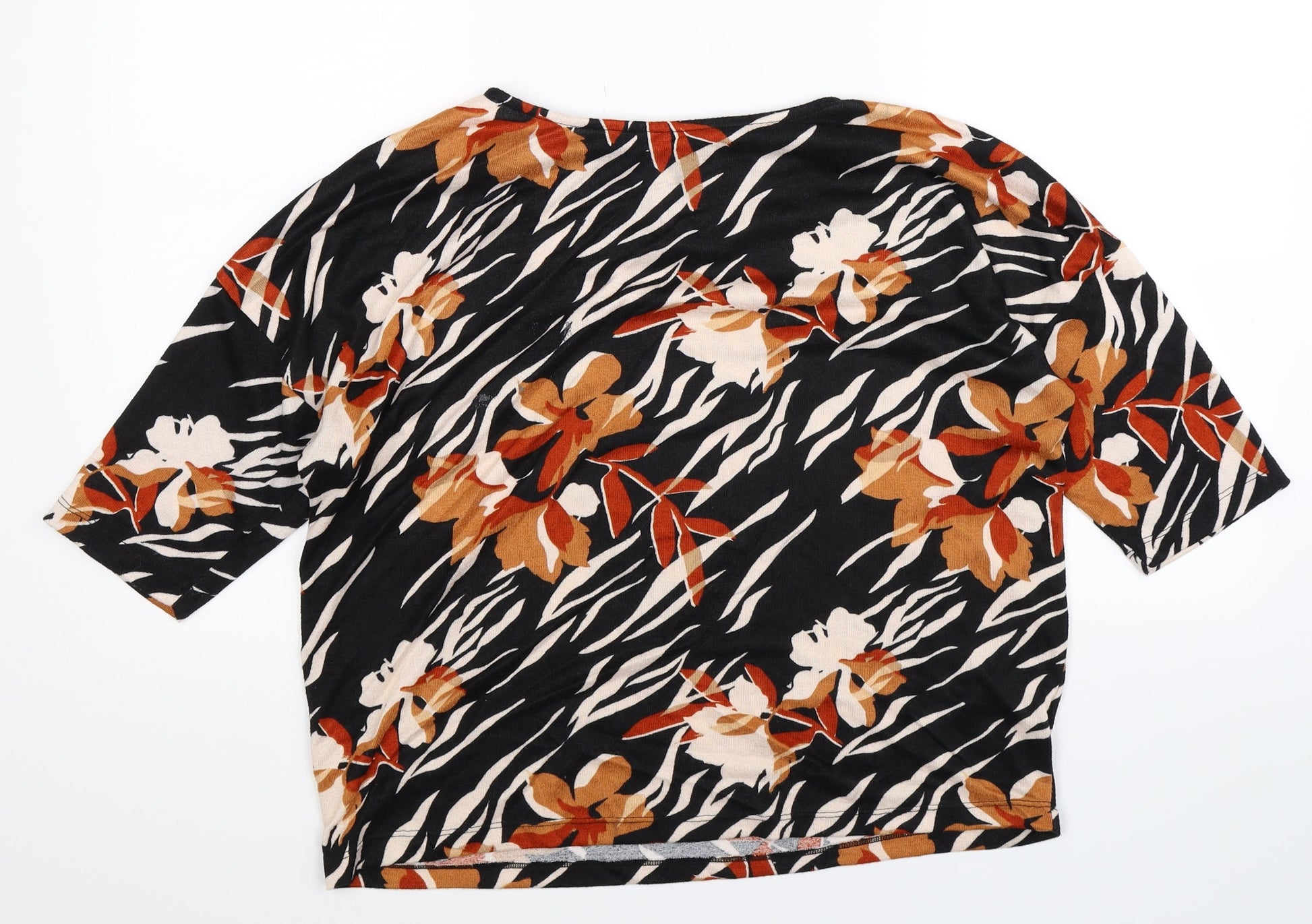 F&F Womens Black Floral Basic T-Shirt Size 12