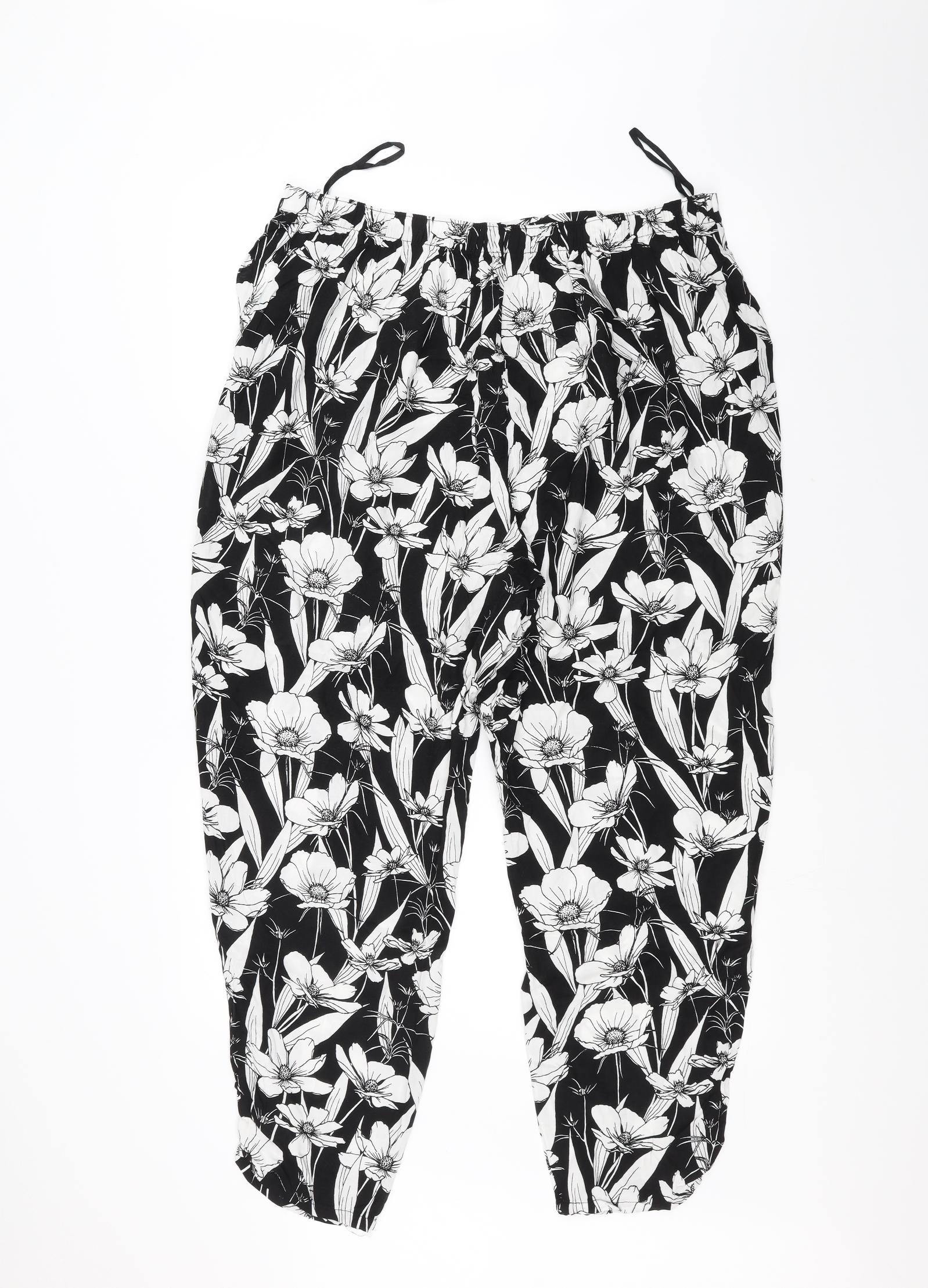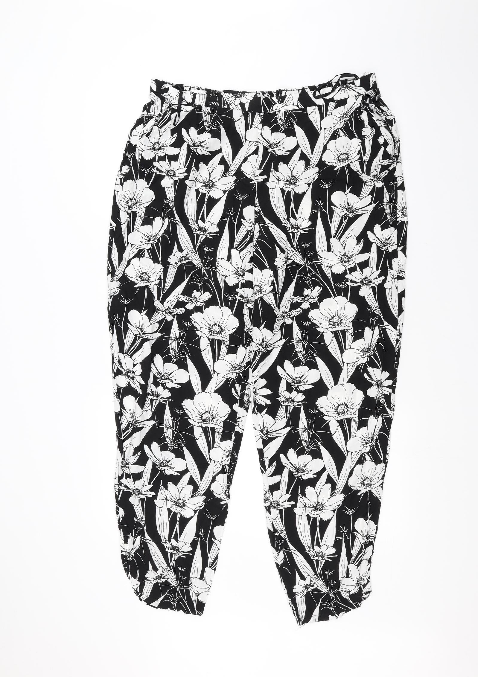 F&F Womens Black Floral Trousers Size 18 L26 in