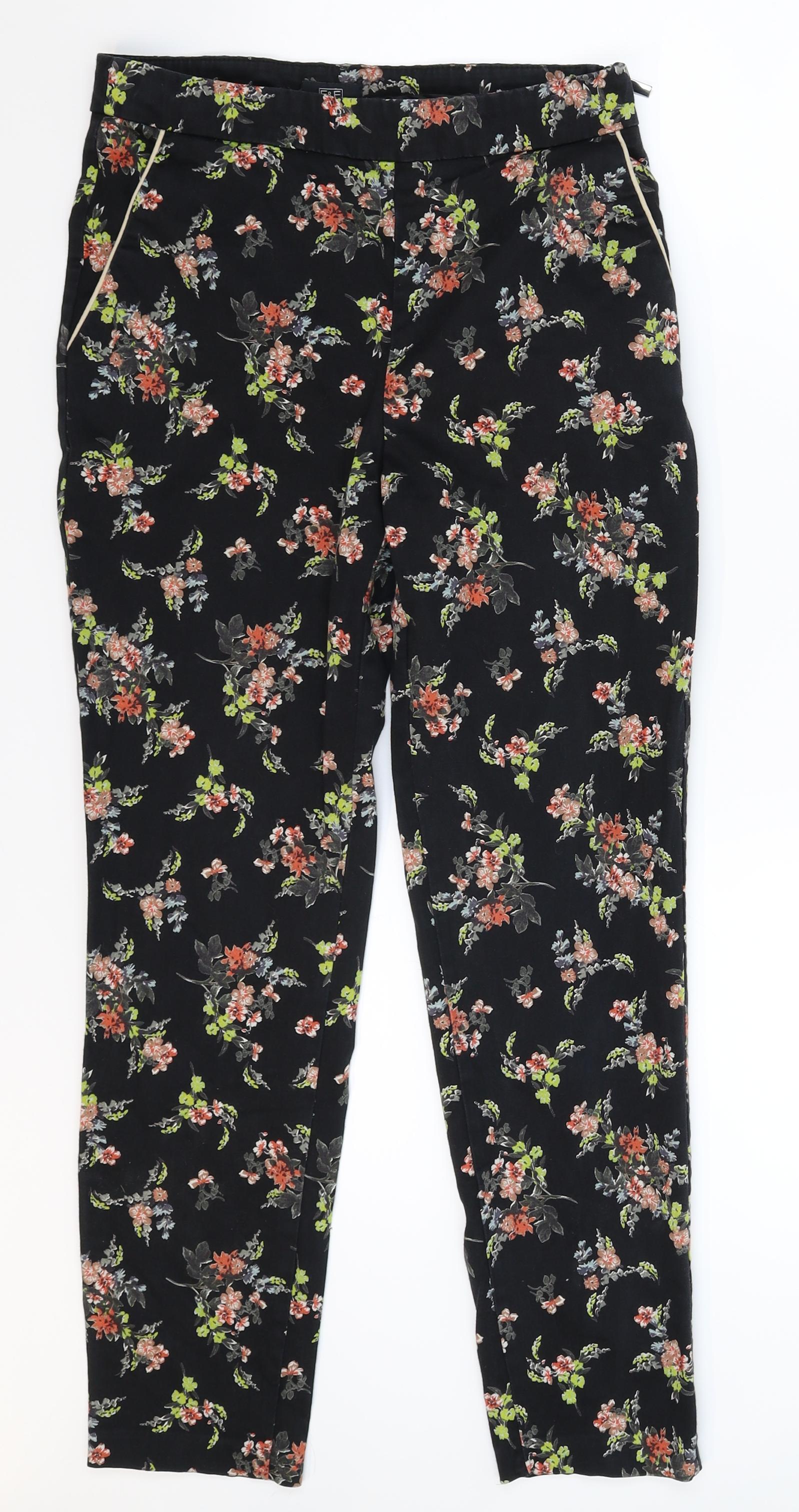 F&F Womens Black Floral Trousers Size 26 in L26 in