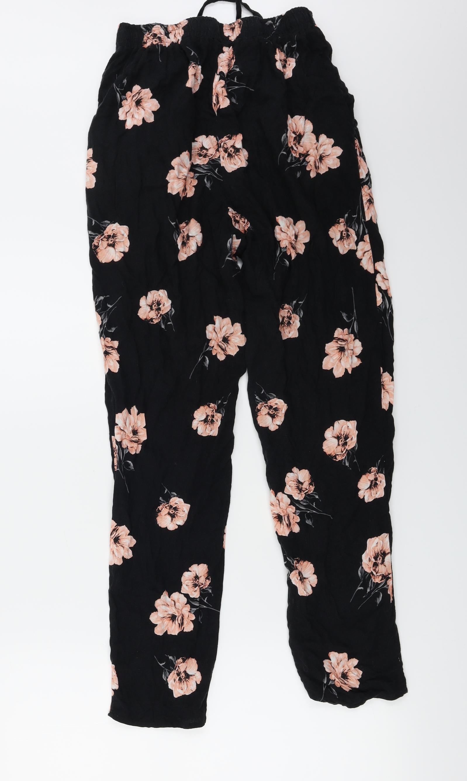 F&F Womens Black Floral Trousers Size 8 L24 in