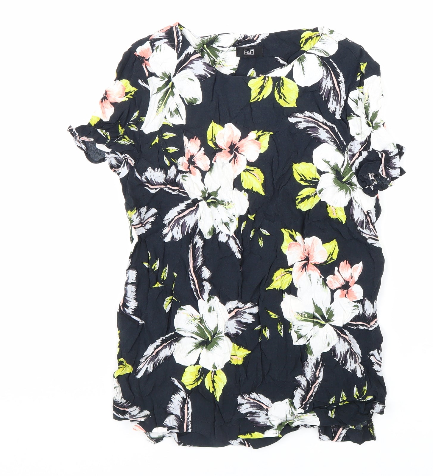 F&F Womens Black Floral Viscose Basic Blouse Size 10 Boat Neck