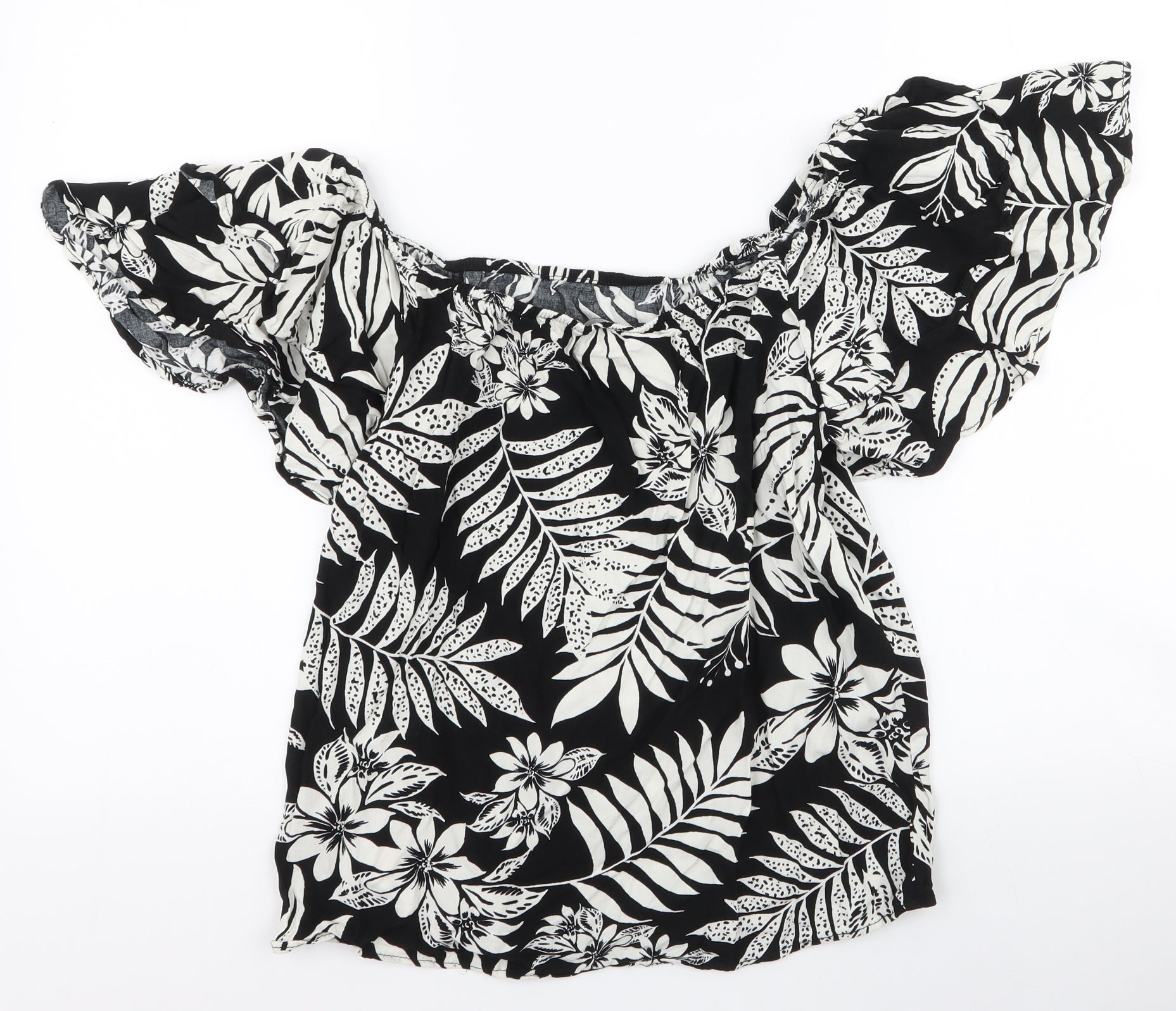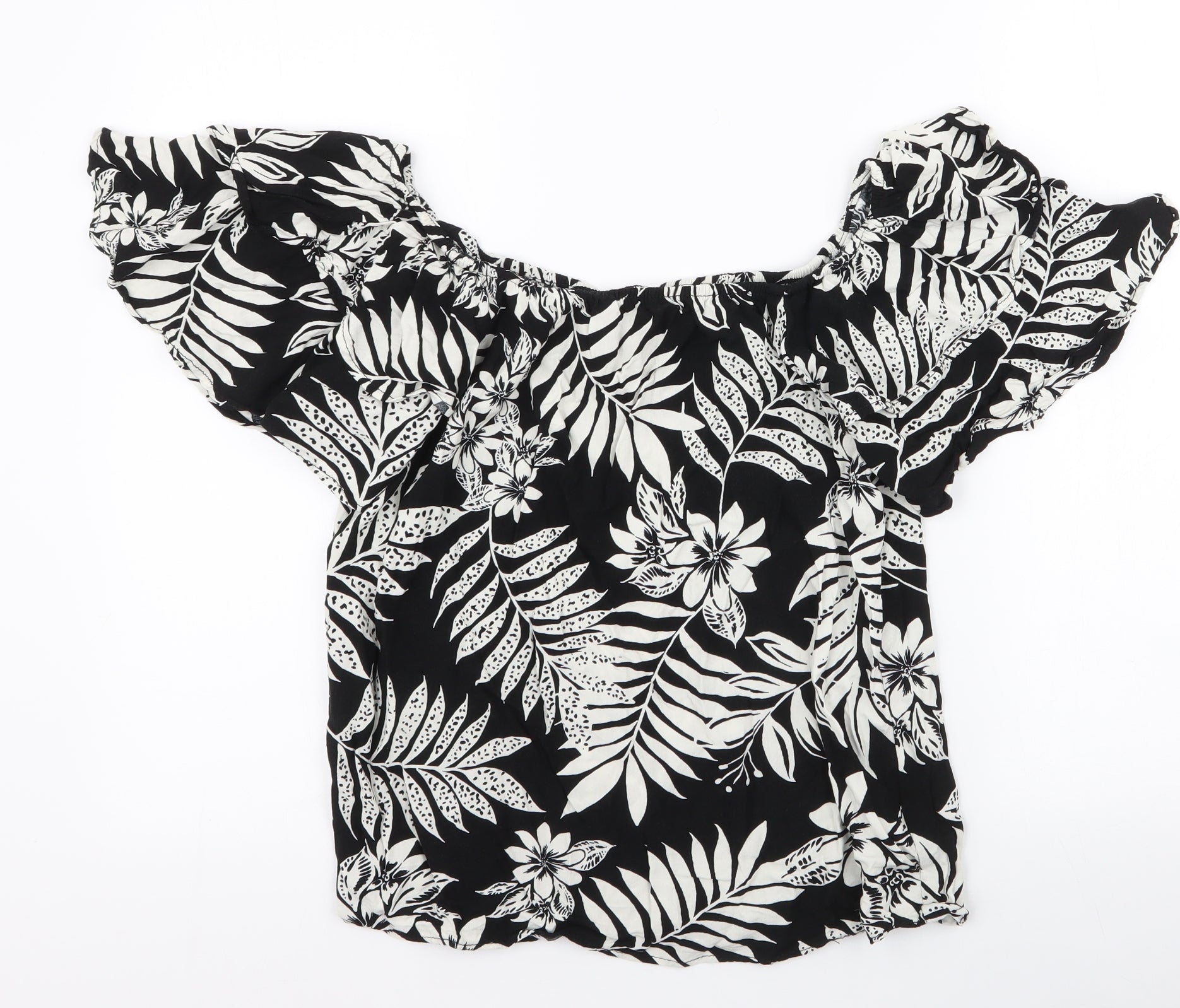 F&F Womens Black Floral Viscose Basic Blouse Size 10 Off the Shoulder
