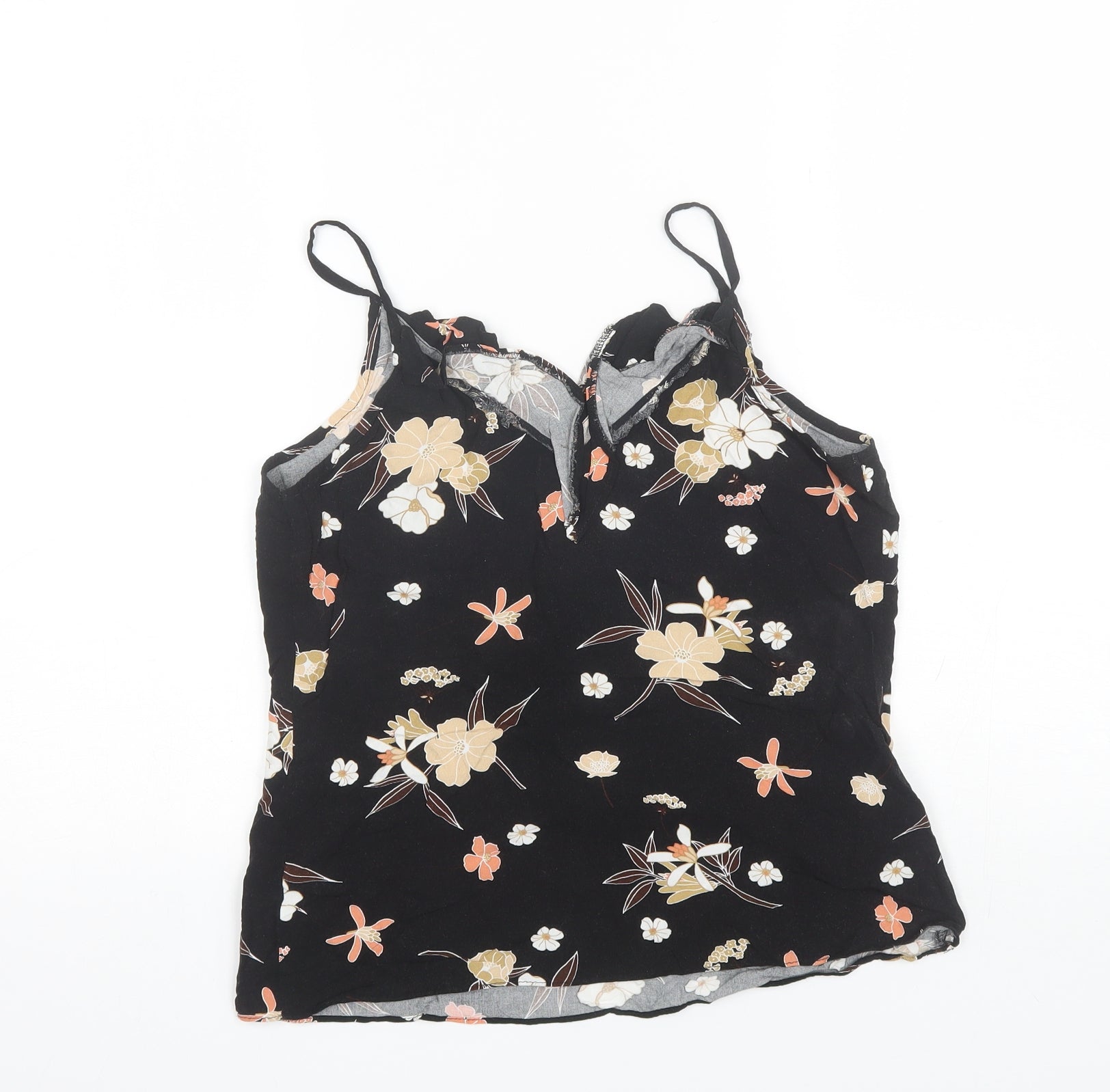 F&F Womens Black Floral Viscose Basic Blouse Size 8 V-Neck