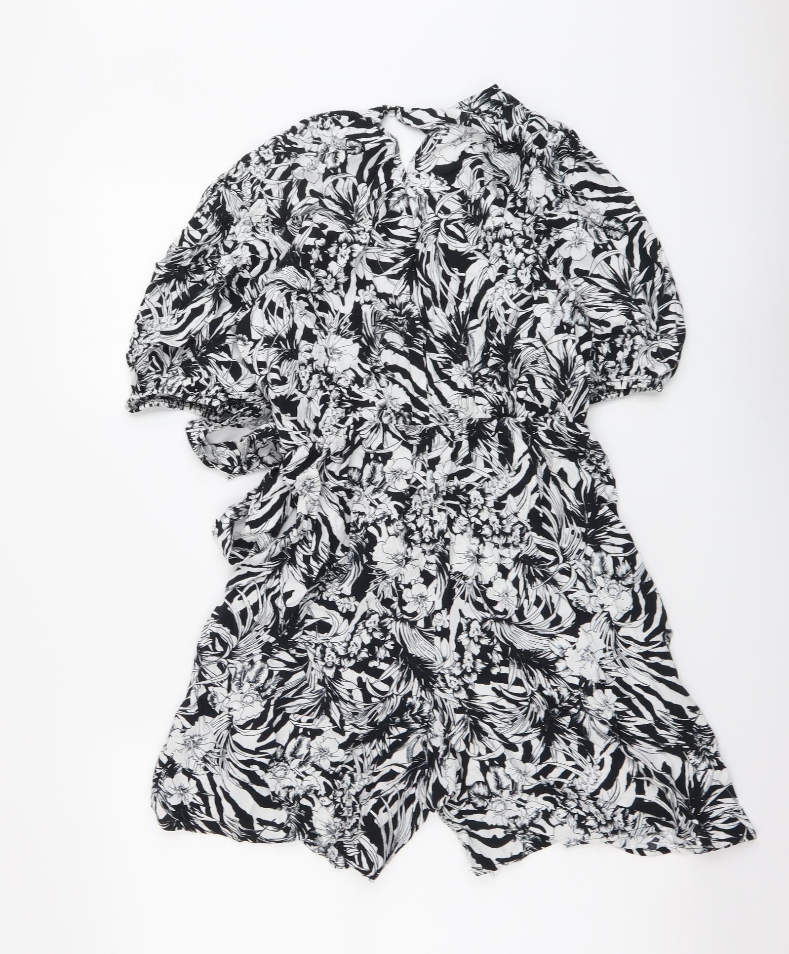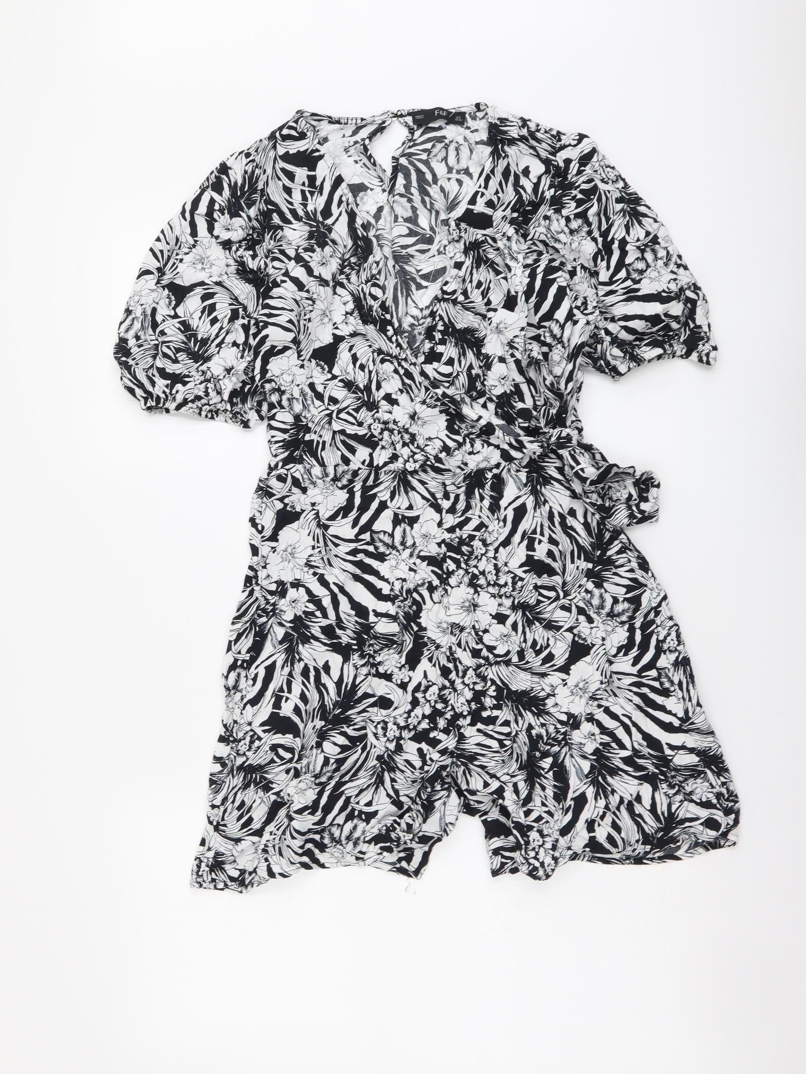 F&F Womens Black Floral Viscose Playsuit One-Piece Size 8 Pullover