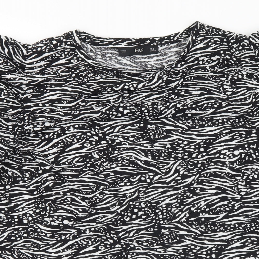 F&F Womens Black Geometric Polyester Basic Blouse Size 8 Round Neck