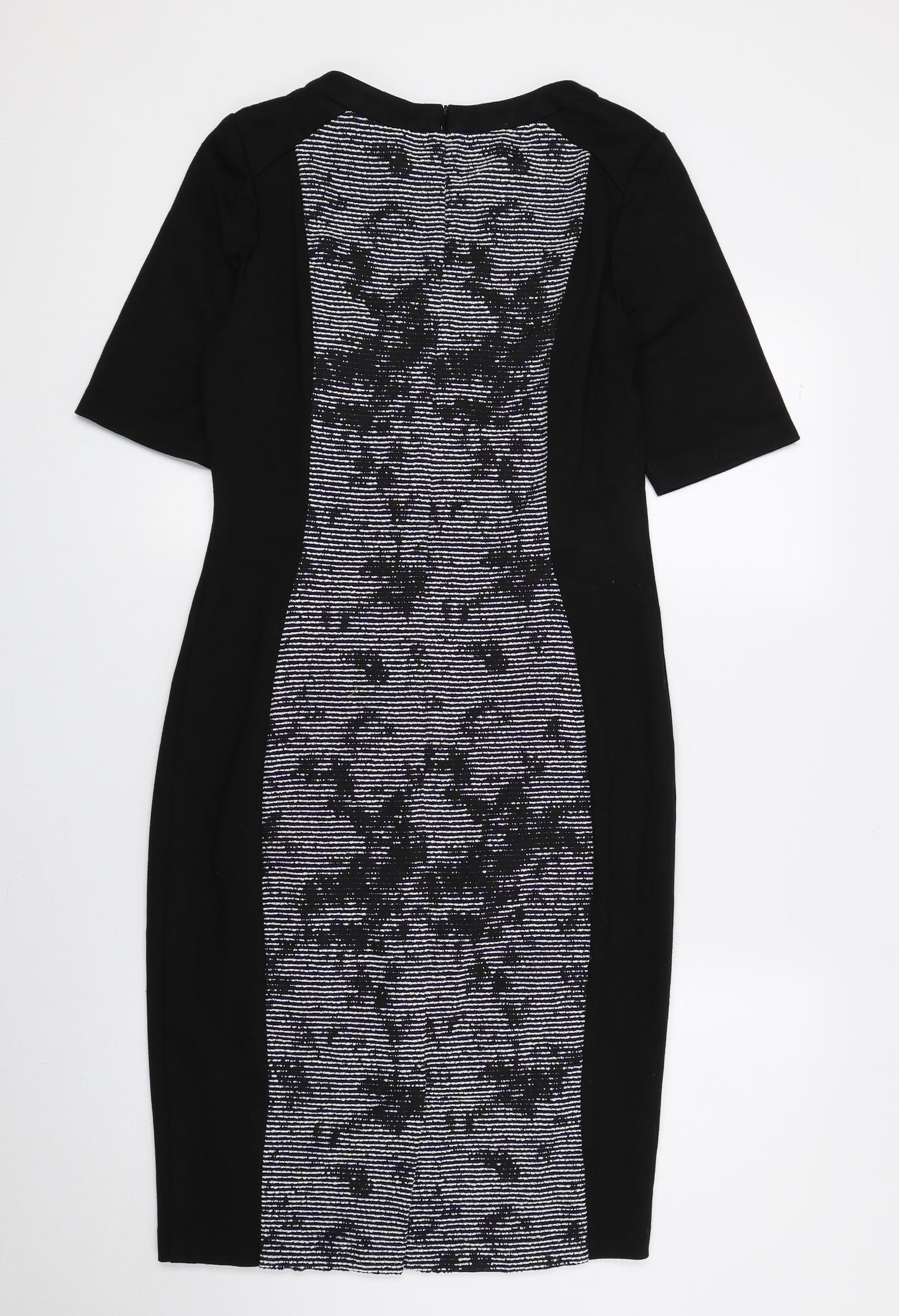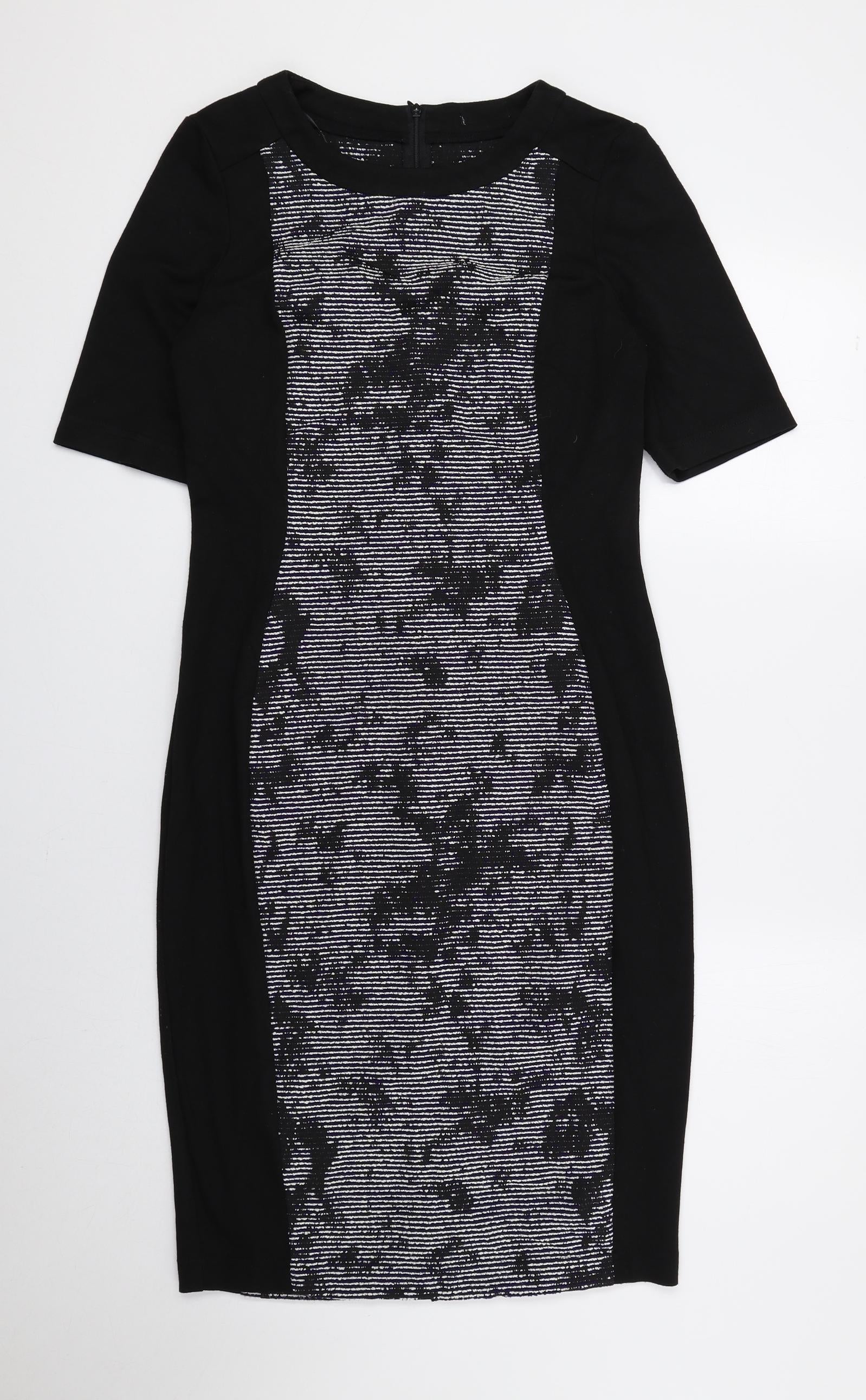F&F Womens Black Geometric Polyester Pencil Dress Size 10 Round Neck Zip