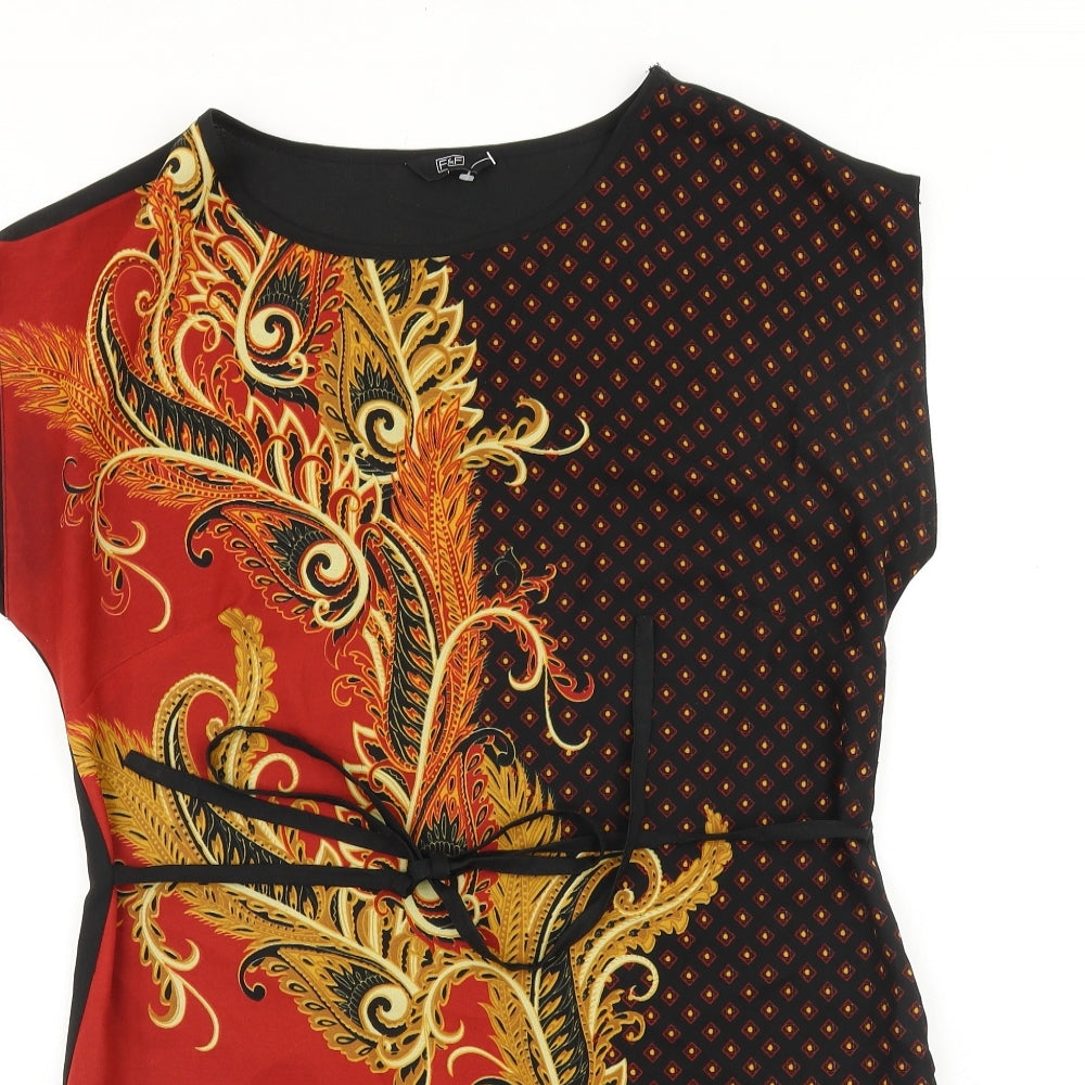 F&F Womens Black Geometric Polyester Shift Size 12 Boat Neck Tie