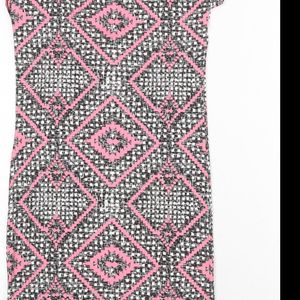 F&F Womens Black Geometric Viscose A-Line Size 6 Scoop Neck Pullover