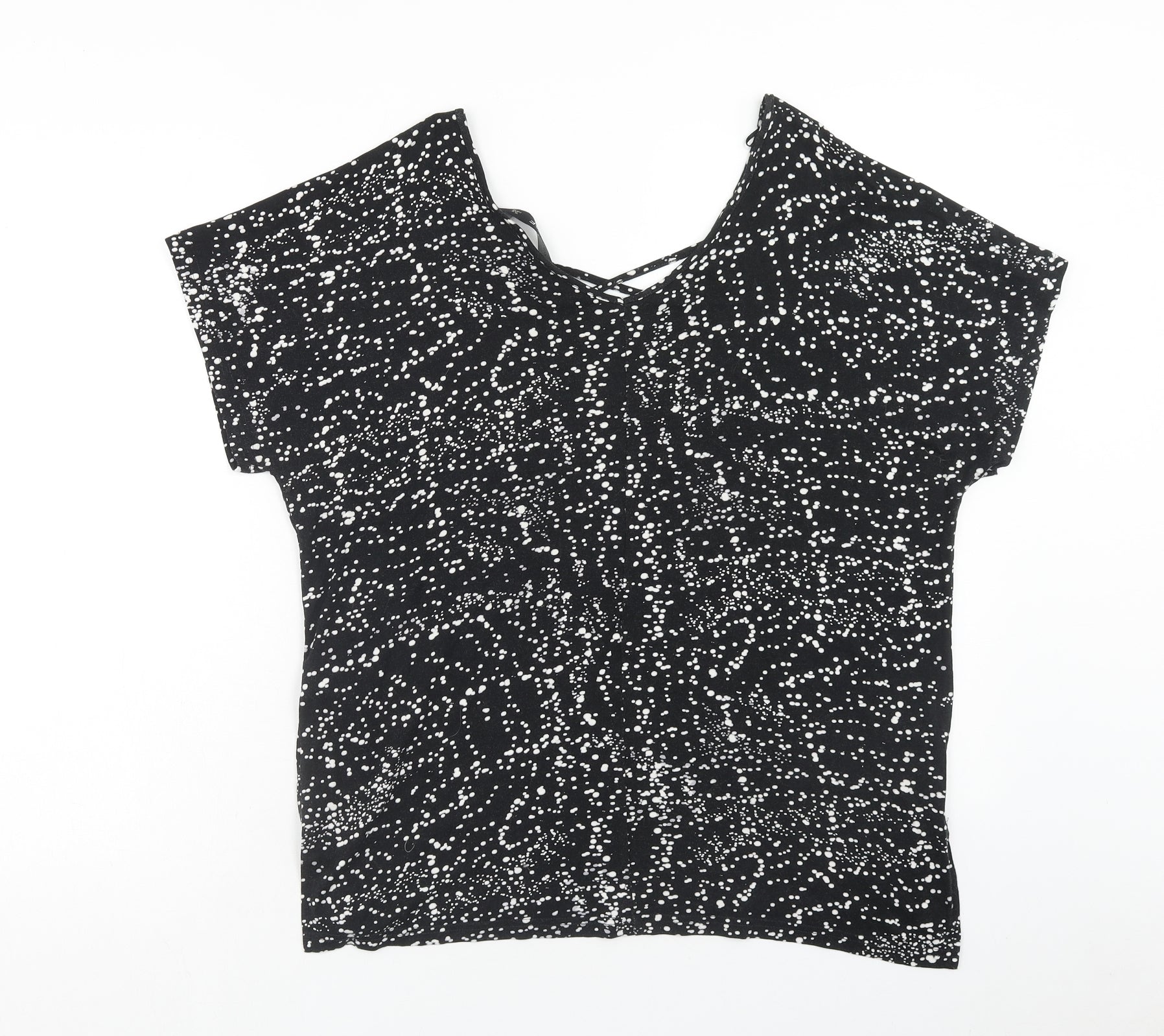 F&F Womens Black Geometric Viscose Basic T-Shirt Size 12 V-Neck - Cross Back Detail
