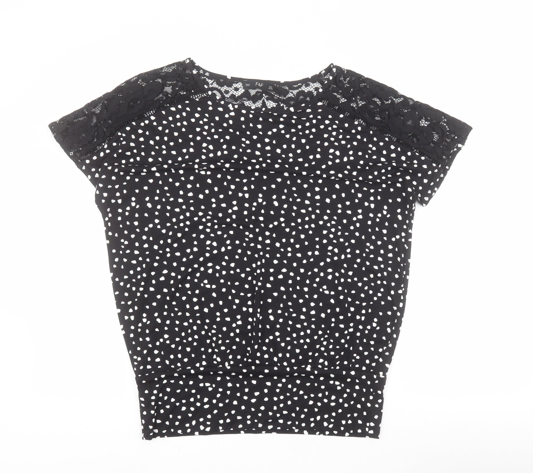 F&F Womens Black Polka Dot Viscose Basic T-Shirt Size 8 Round Neck